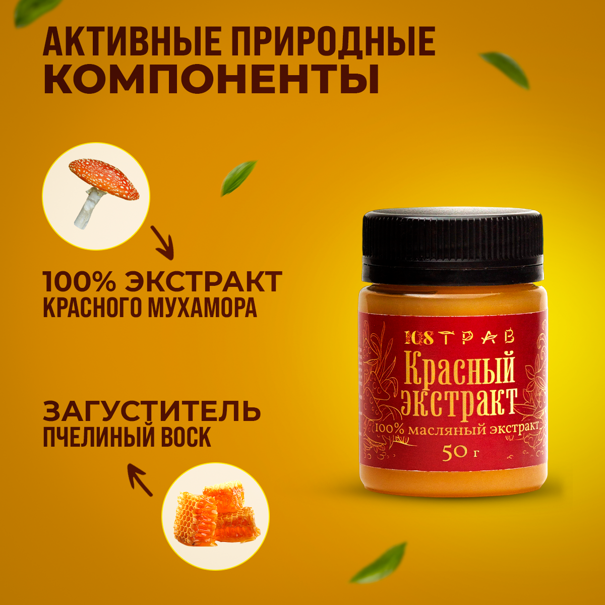 | Состав | 100% экстракт красного мухомора, загуститель пчелиный воск. |