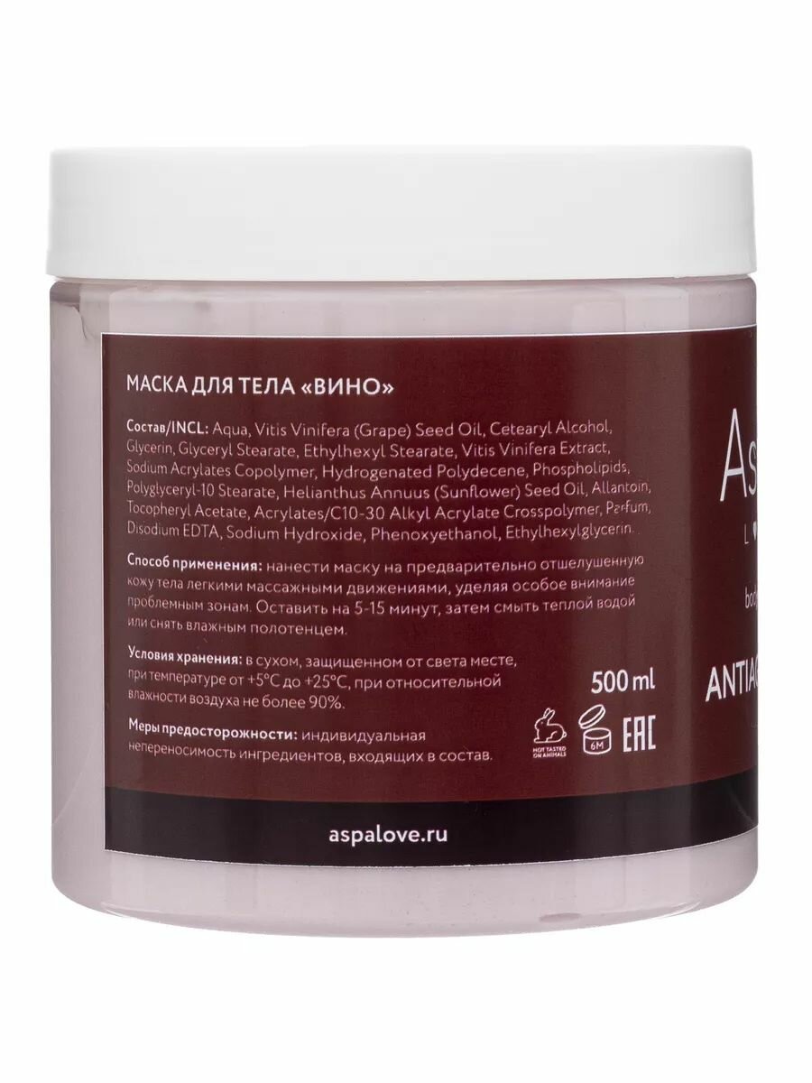 10 цен на AspA Love Обертывание омолаживающее для похудения, маска для тела увлажняющая Вино 500 гр