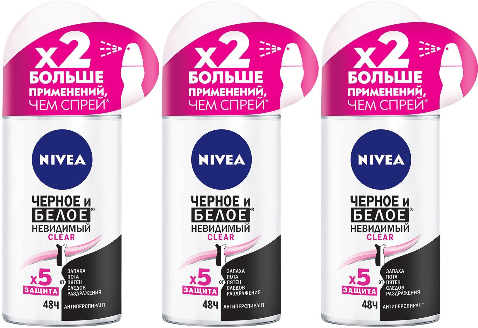 10 цен на Nivea Дезодорант-антиперспирант Черное и белое Clear невидимый роликовый, 50 мл, 3 шт.