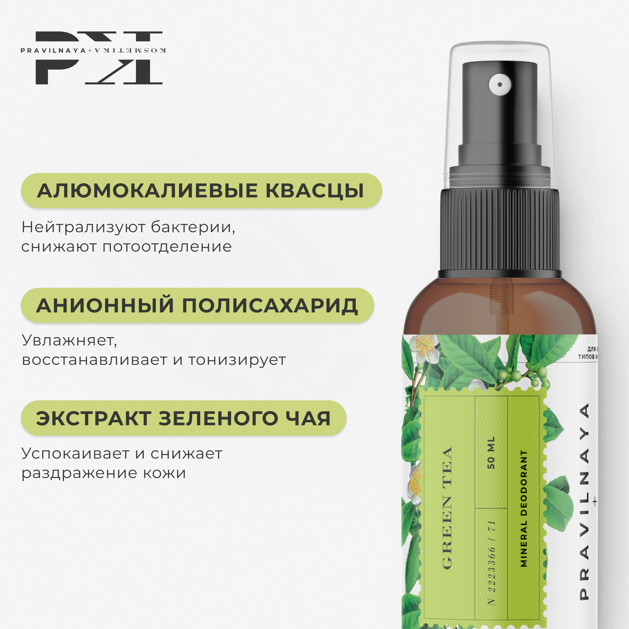 Минеральный дезодорант спрей для тела и ног Pravilnaya Kosmetika универсальный от пота и запаха Зеленый Чай, 50 мл 335 ₽