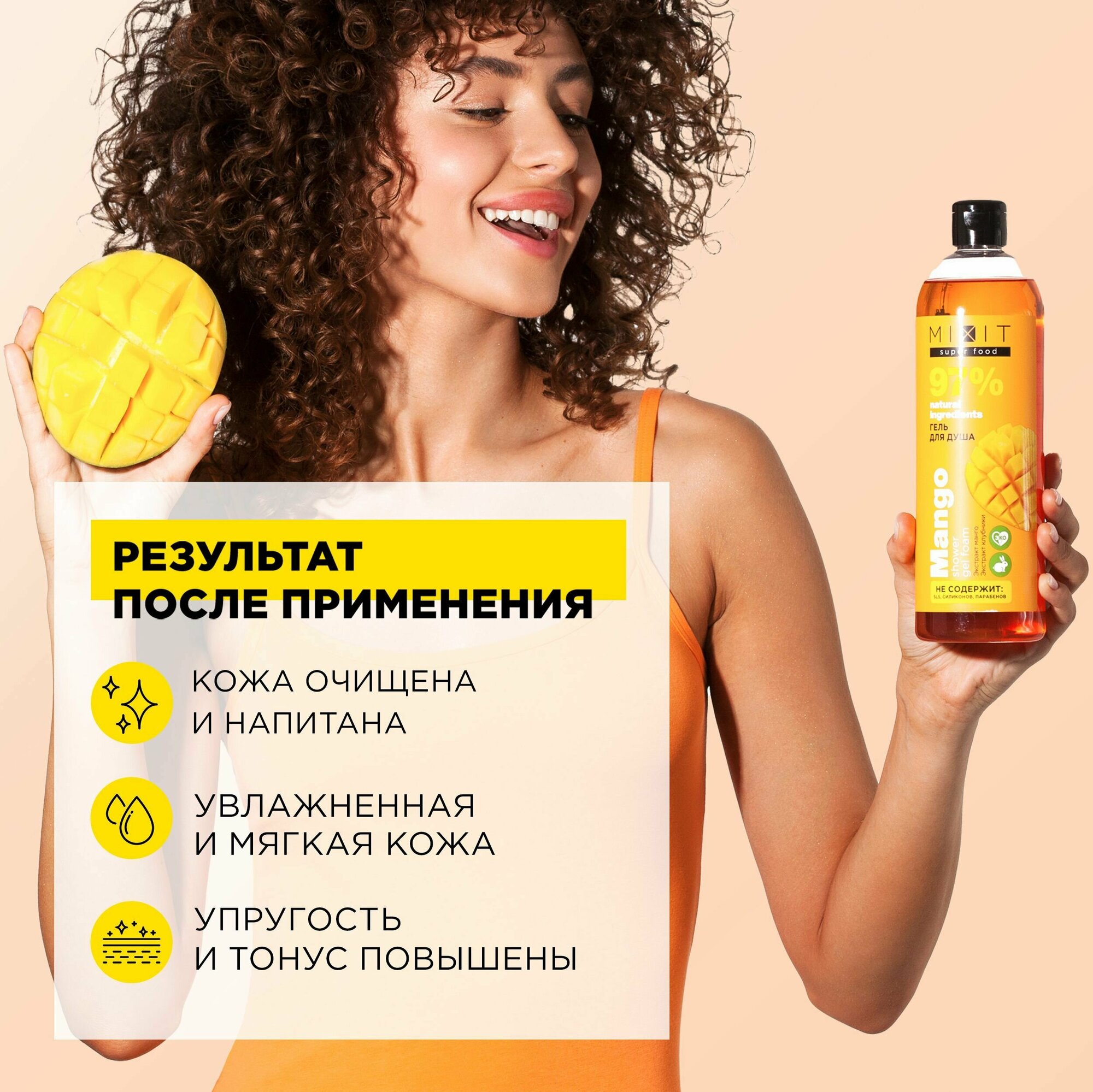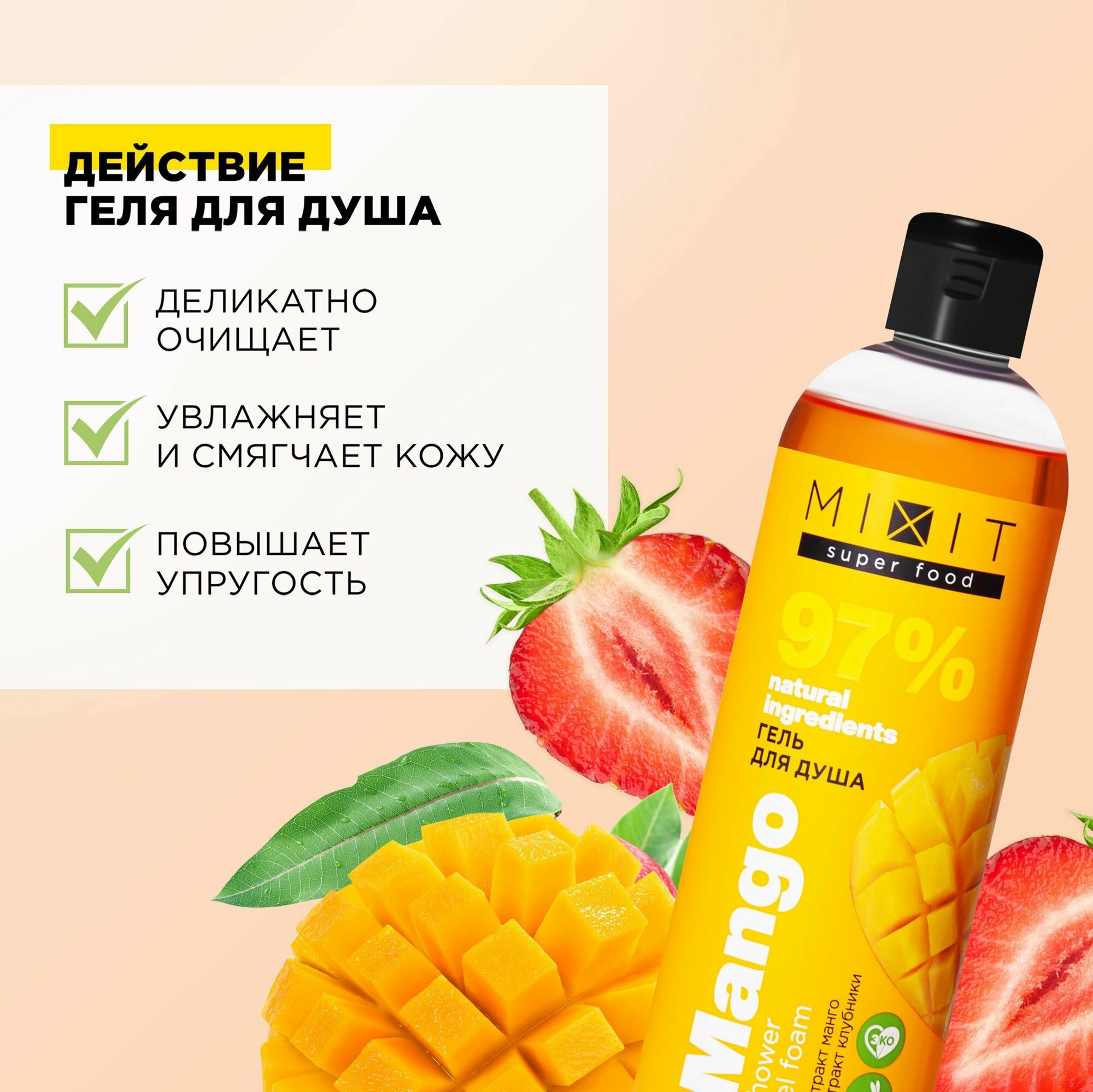 Отзывы на MIXIT Очищающий гель для душа с экстрактом клубники, манго SUPER FOOD, 750 мл