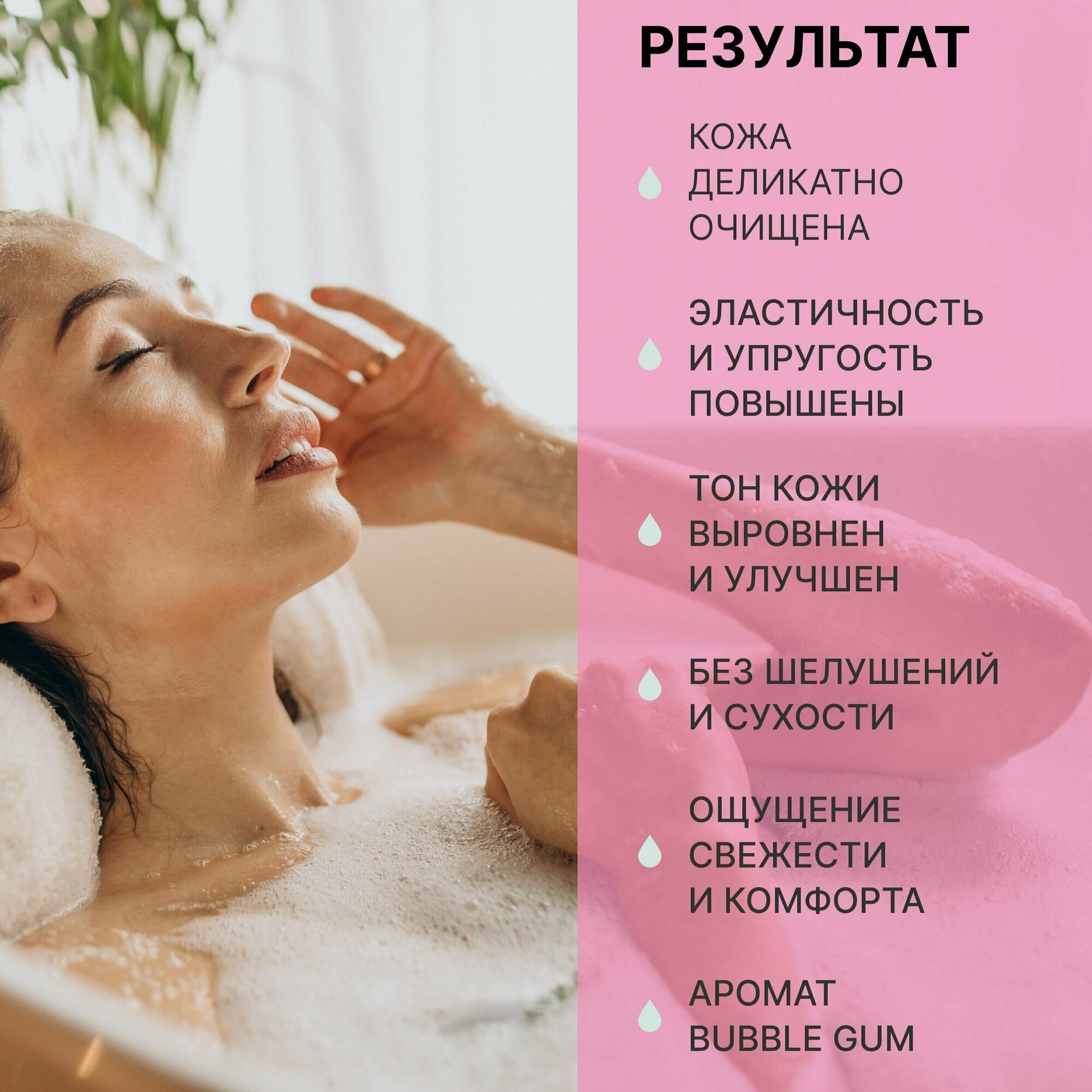 | Эффект | антибактериальный / восстановление / отбеливание / очищение / питание / расслабление / смягчение / тонизирование / увлажнение |