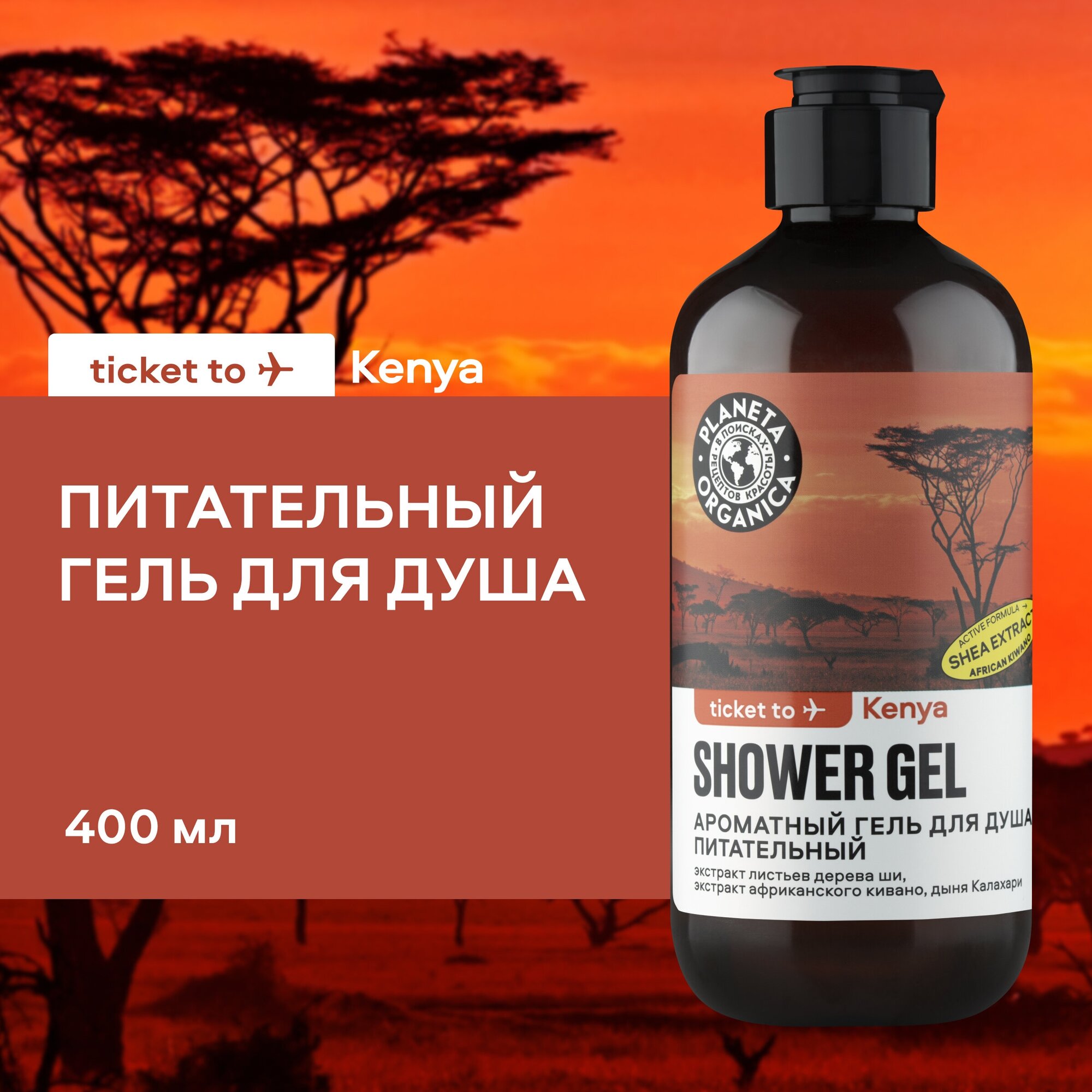 Ароматный гель для душа "Питательный" Planeta Organica Ticket to Kenya, 400 мл информация: