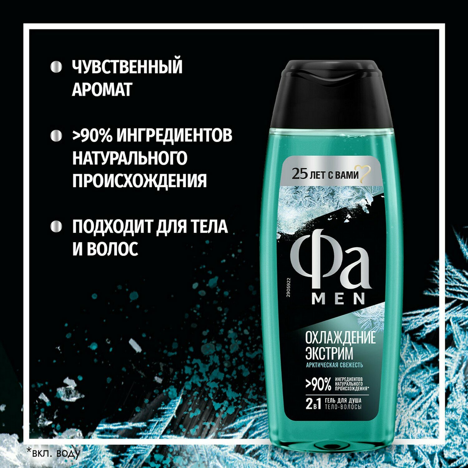 Фа MEN Гель для душа мужской Охлаждение экстрим, арктическая свежесть, 250 мл