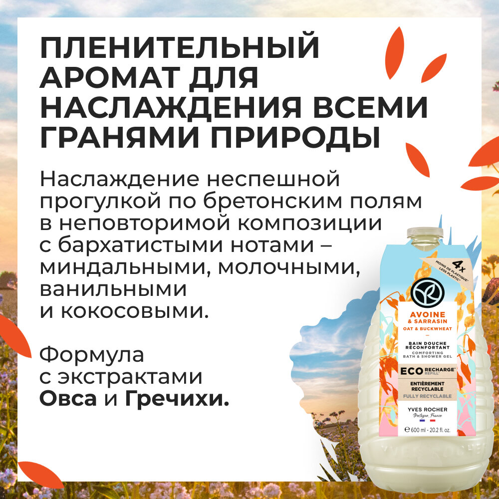Yves Rocher Гель для душа и ванны «Овес и Гречиха», 600 мл 629 ₽