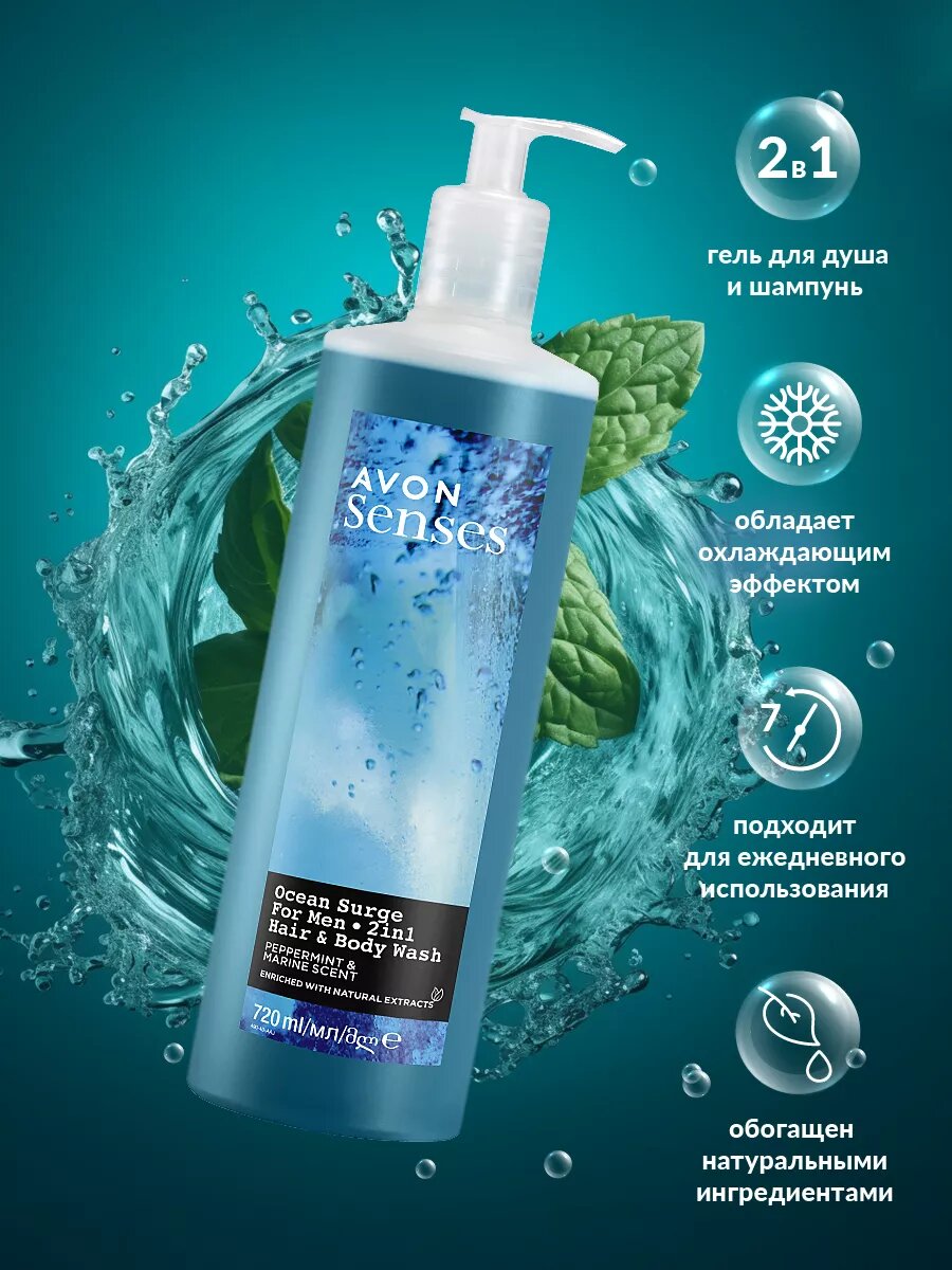 Шампунь-гель для душа Avon Senses для мужчин Бодрящий океан 250 мл. х 2 шт. 589 ₽