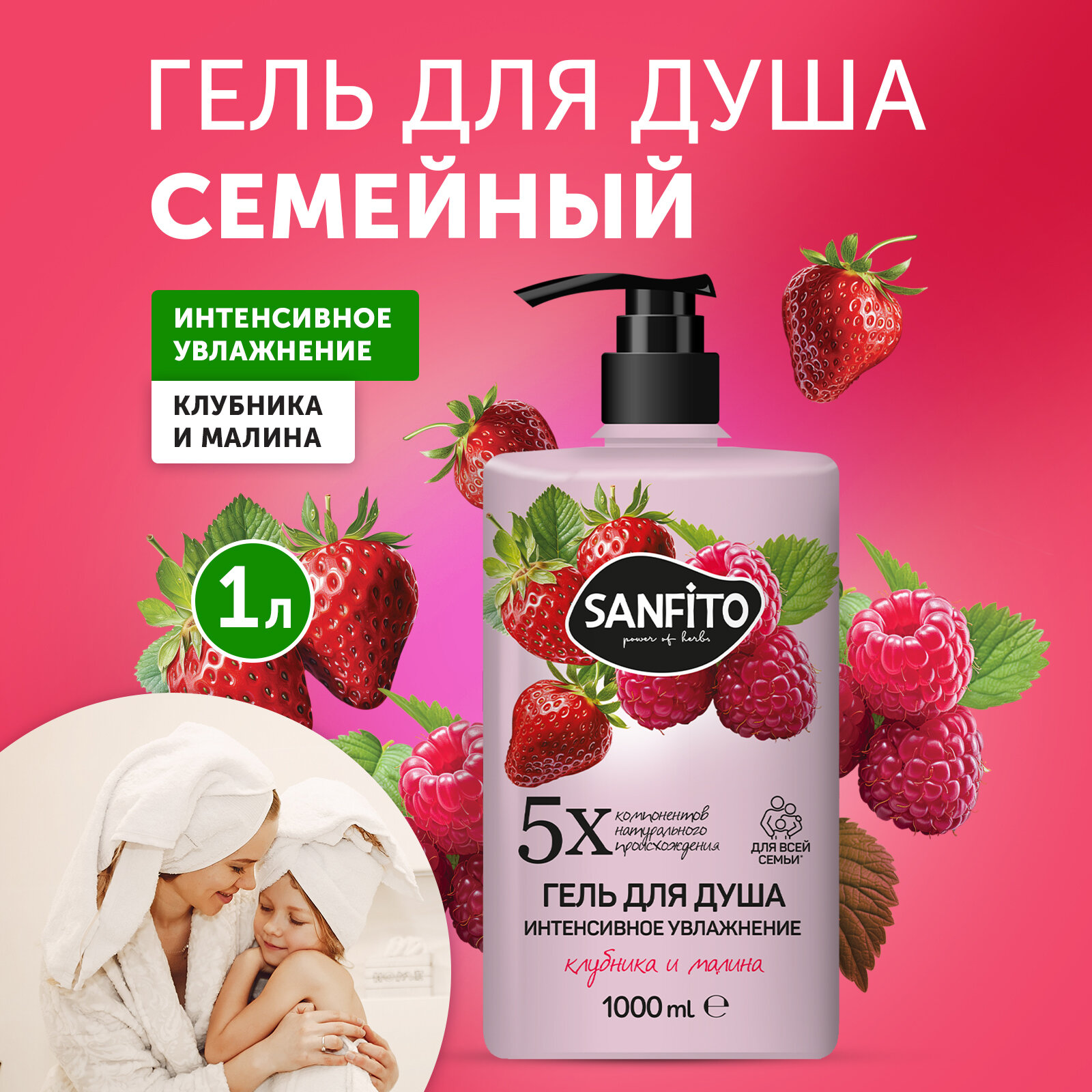 SANFITO Гель для душа Клубника и малина Интенсивное увлажнение, 1 л информация:
