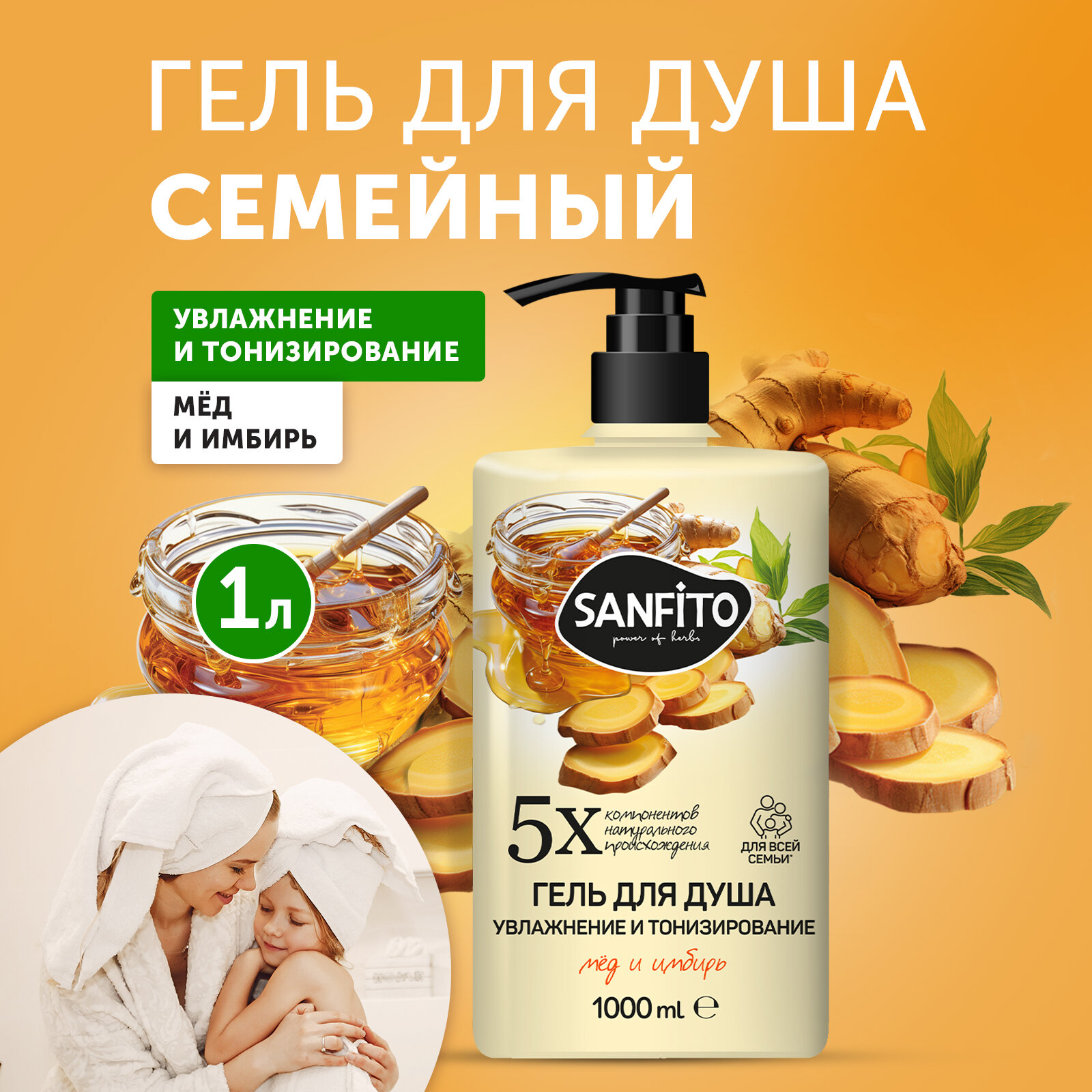 SANFITO гель для душа Мед и имбирь Увлажнение и тонизирование, 1 л информация: