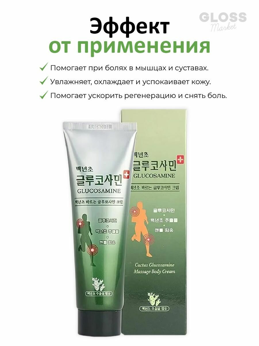 10 цен на Корейский обезболивающий массажный крем-гель c глюкозамином (Juno Cactus Glucosamine Massage Body Cream), 150 мл