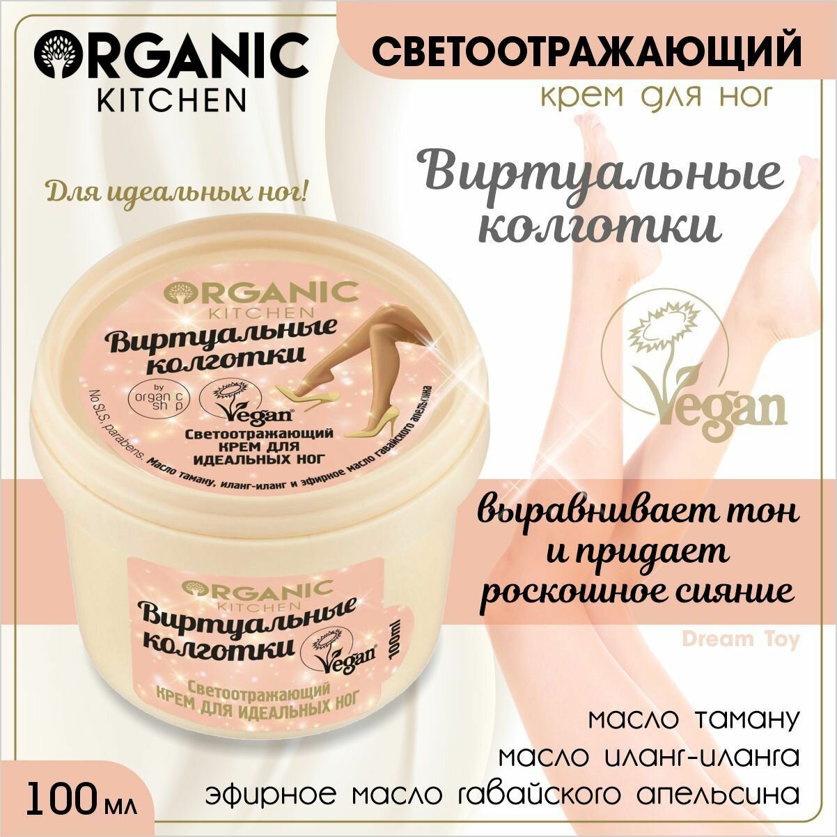 Organic Kitchen / Светоотражающий крем для идеальных ног / Виртуальные колготки , 100 мл 150 ₽