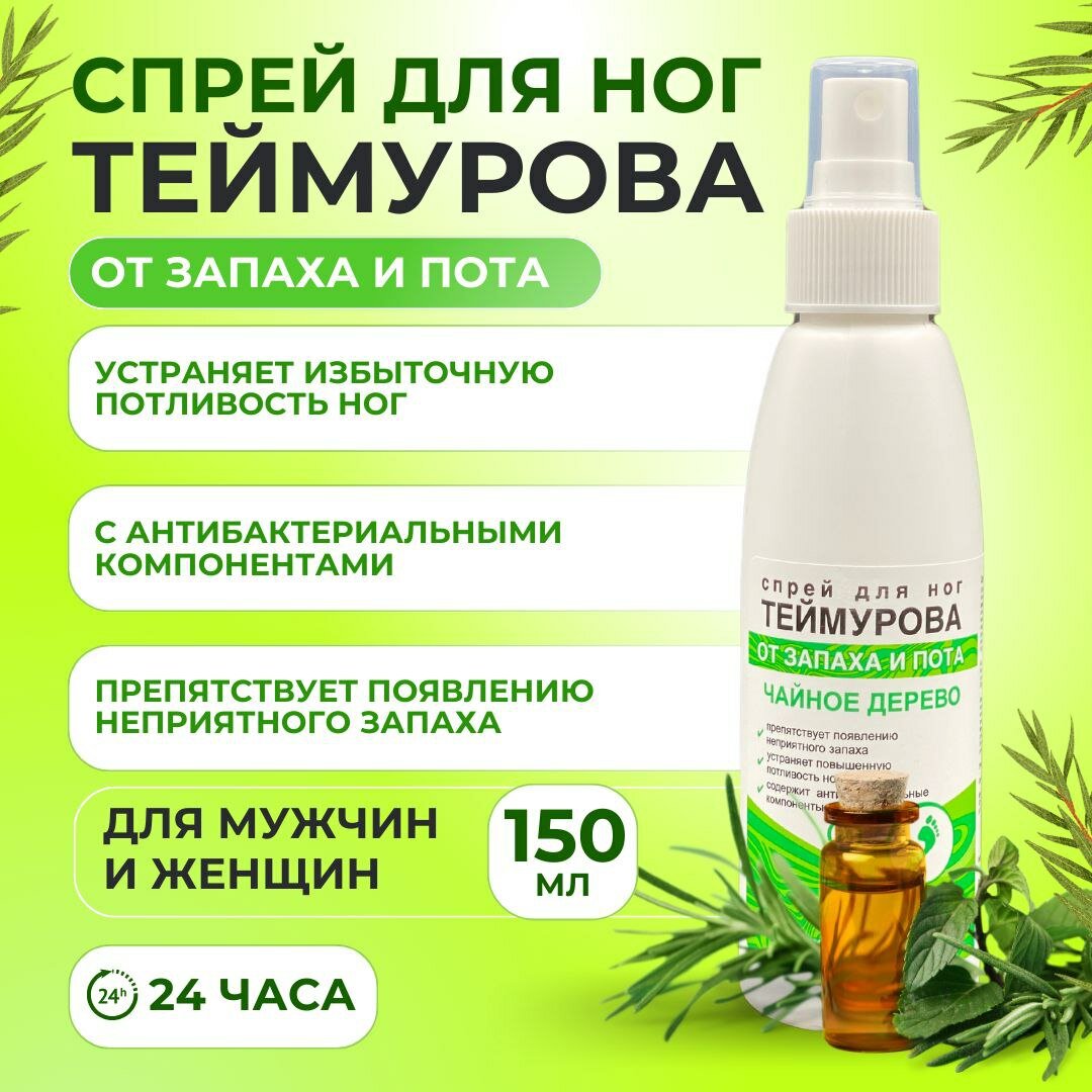 Отзывы на 150 мл. Спрей для ног Теймурова от запаха и пота с чайным деревом