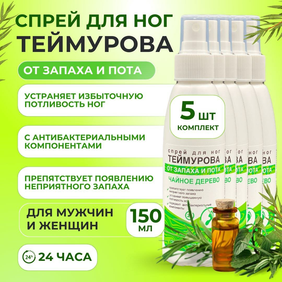 10 цен на 150 мл х 5 шт. Спрей для ног Теймурова от запаха и пота с чайным деревом