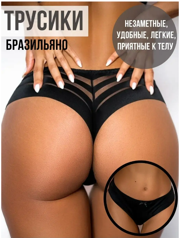 Трусы бразильяна женские 44-46 RU, 45–55кг, M, черные 342 ₽