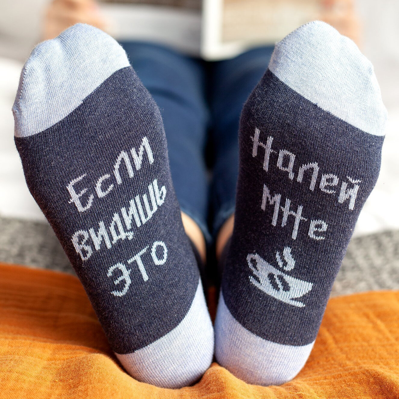 Носки Happyfox с надписью смешные хлопковые прикольные HF0159видишь.налей.пиво.т.серыймеланж 481 ₽