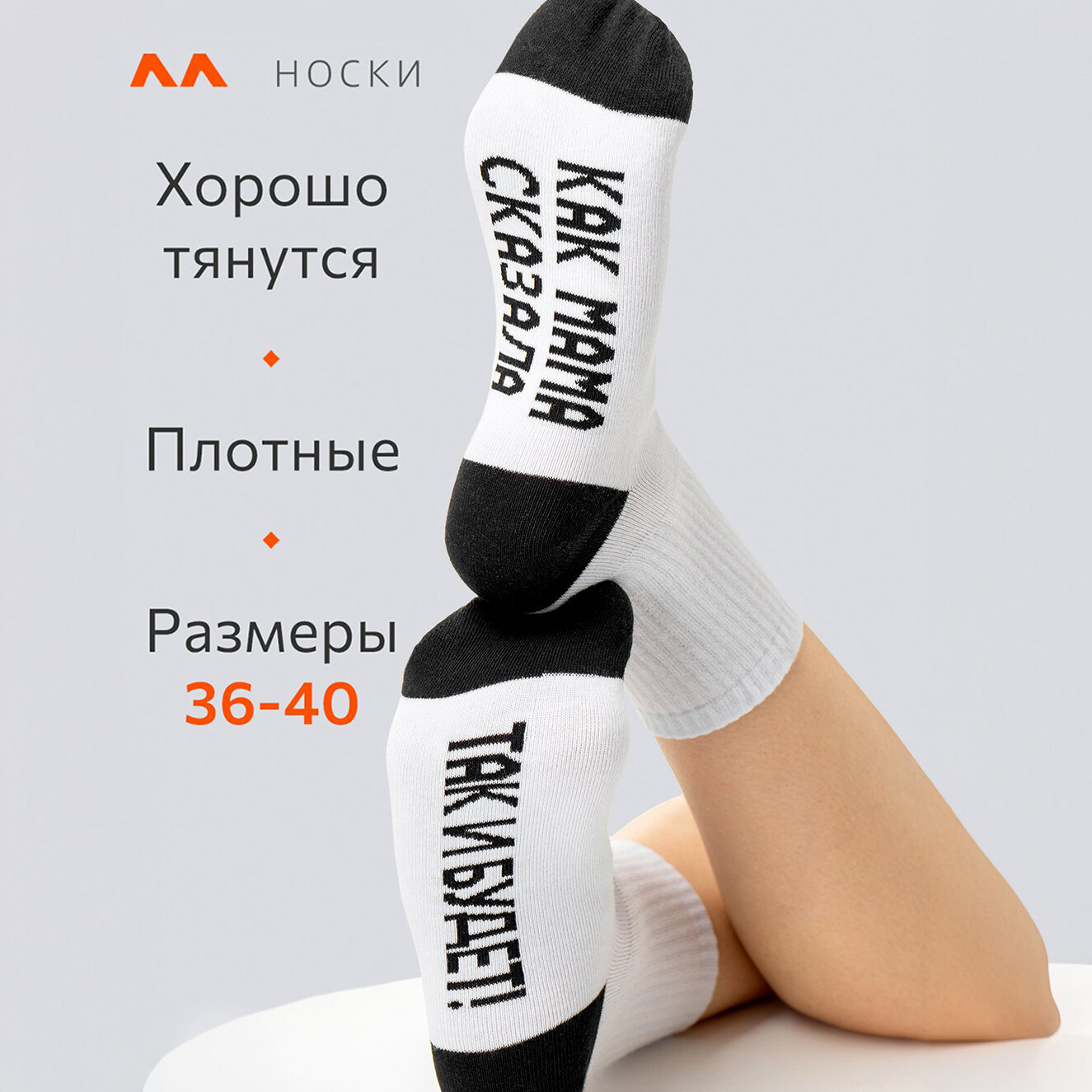 Отзывы на Носки Happyfox высокие с прикольными надписями на стопах HF0159как.мама.сказала.белый