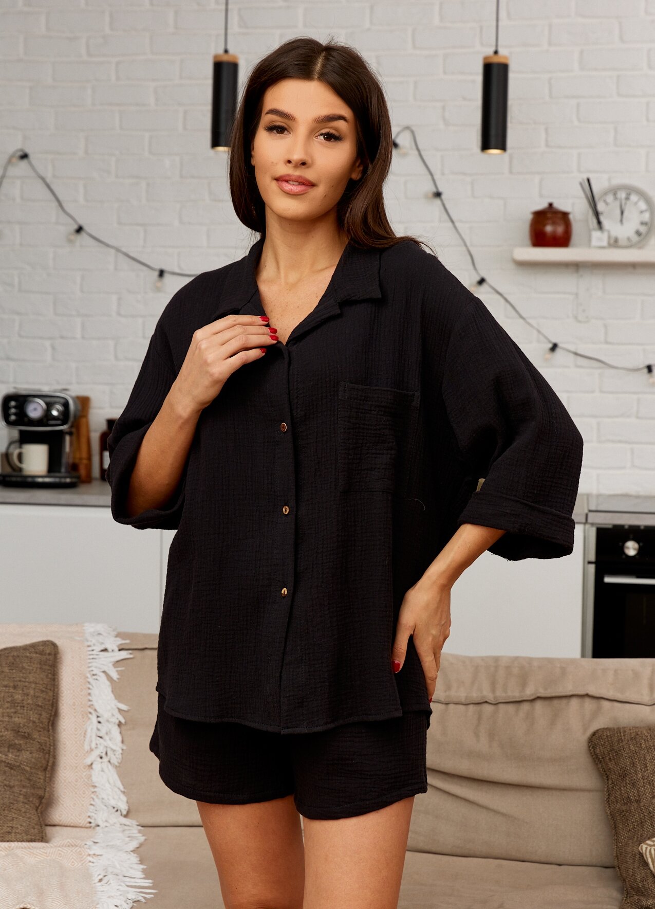 "Муслиновая женская пижама Sold Out", размер 50-52, цвет черный информация: