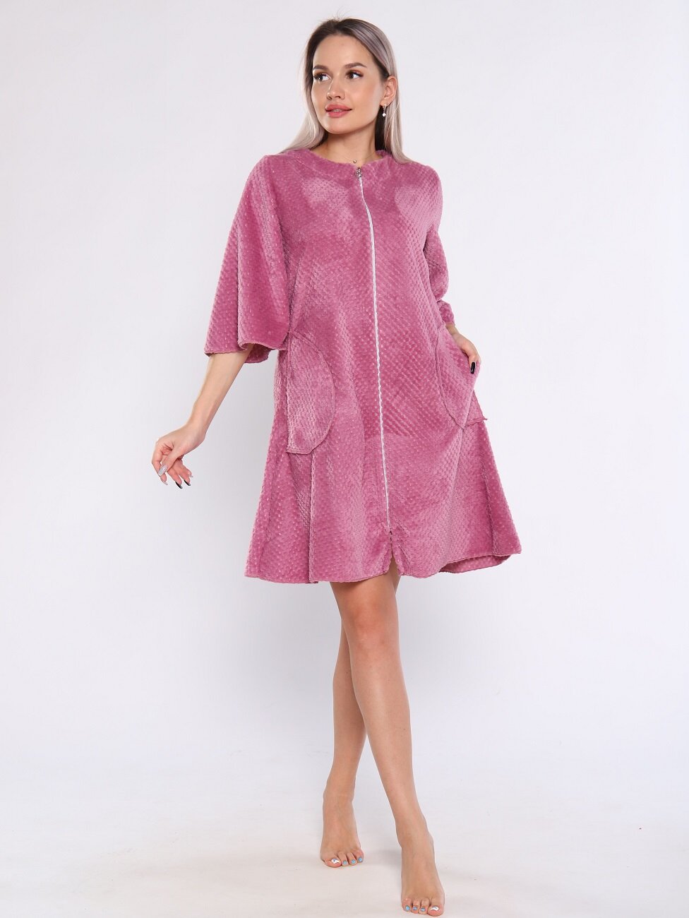 10 цен на Халат "Руся" на молнии, цвет сухая роза, р-р 48
