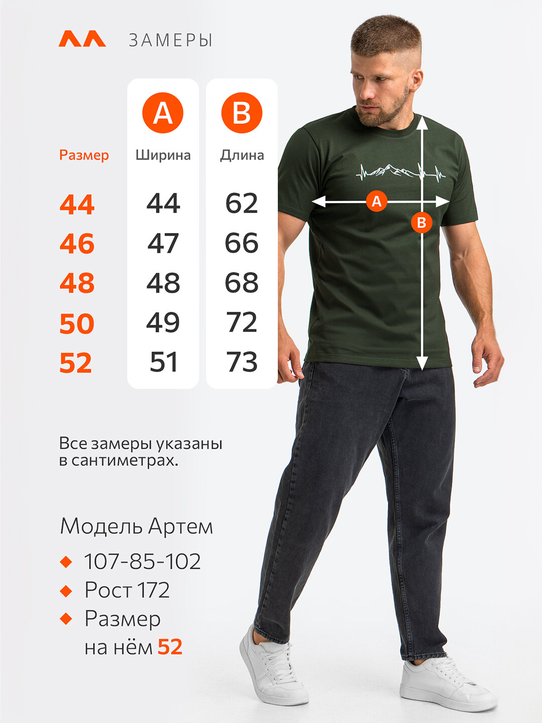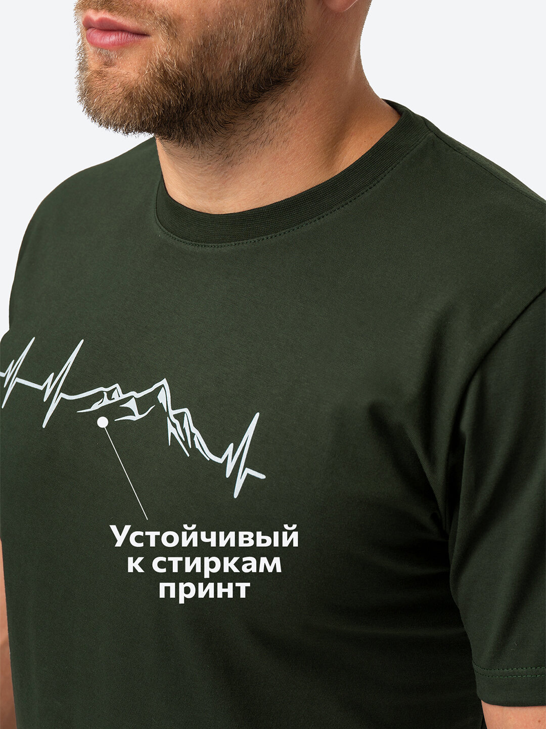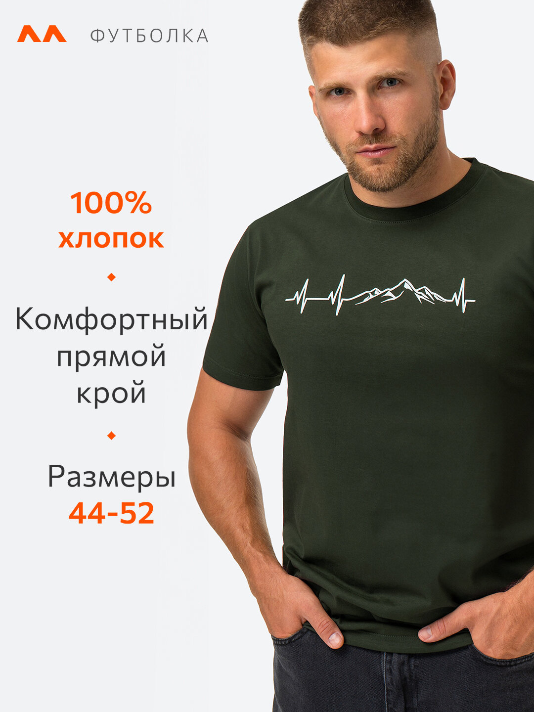 Отзывы на Футболка мужская с принтом хлопковая HappyFox HF9111A горы.кардиограмма,хаки 52