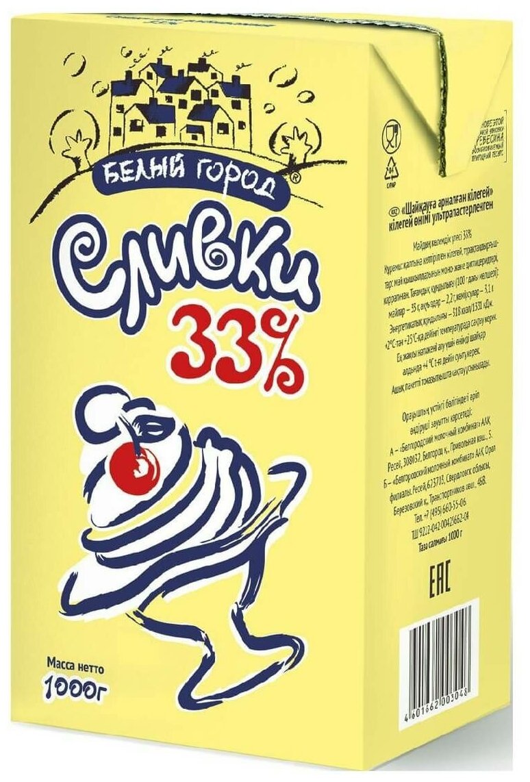 Сливки Ультрапастеризованные 33% Белый Город 1,0л 1шт. информация: