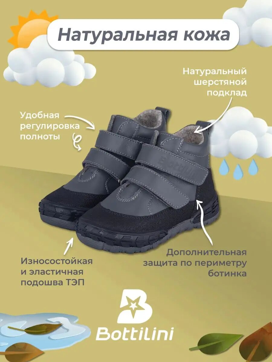 Ботинки для мальчиков Bottilini BL-114(3), размер - 28, серый информация: