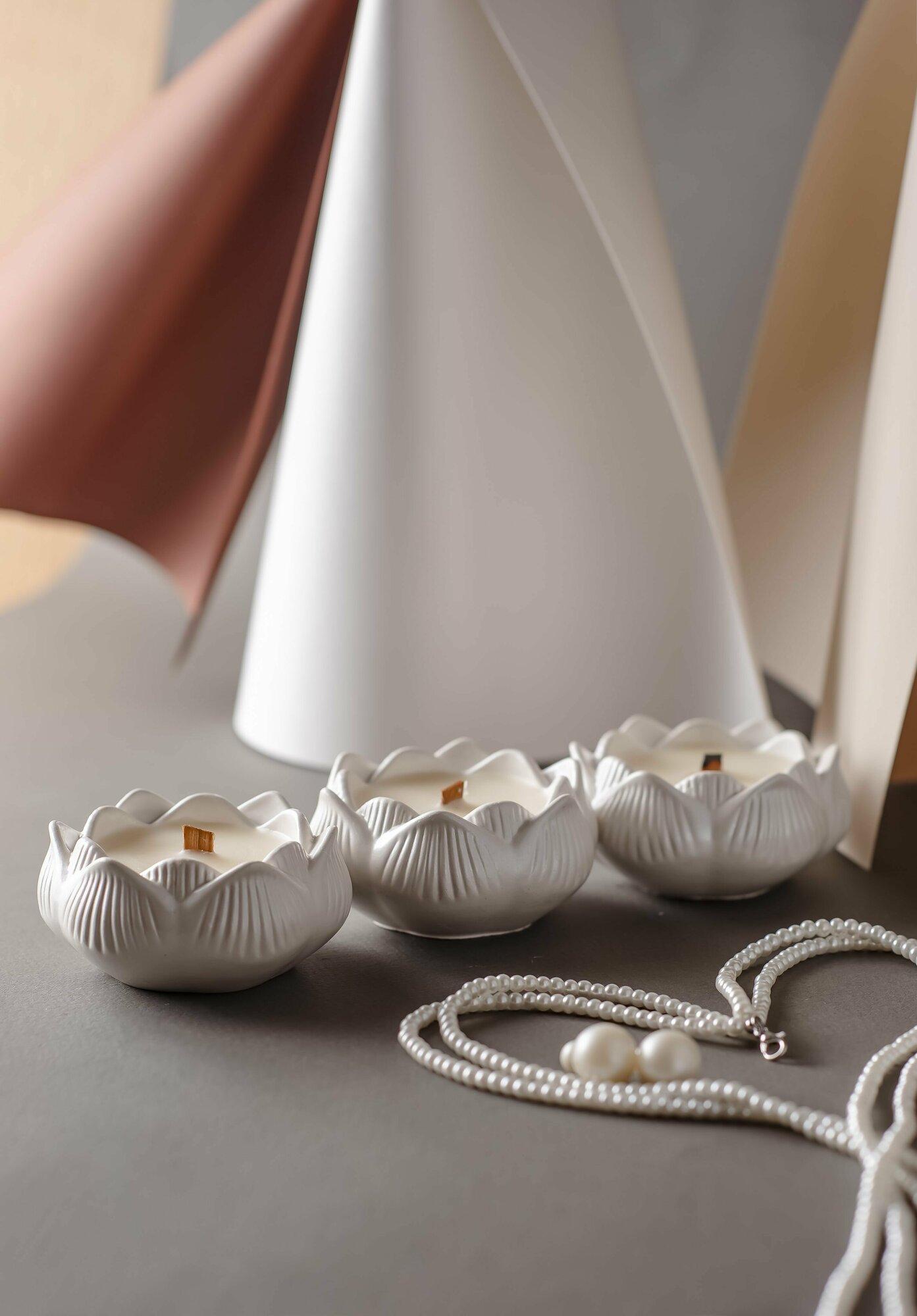 10 цен на Свечи ароматические ванильная карамель/ Аромасвеча из соевого воска в форме лотоса /Аромасвечка с деревянным фитилем / 15ч горения / Ручная работа