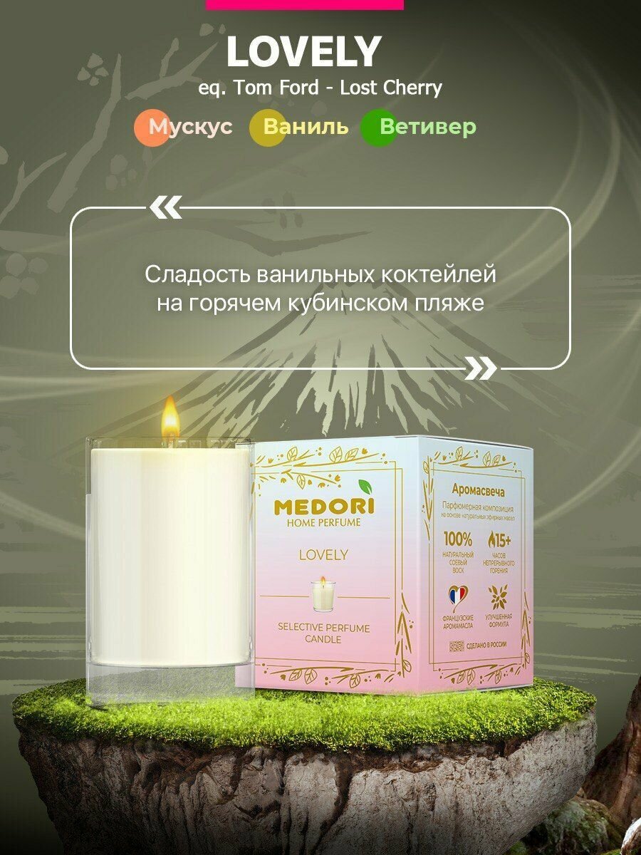 10 цен на Свеча ароматическая для дома Medori LOVELY парфюмированная, декоративная с запахом в стеклянном стакане, из соевого воска для украшения интерьера