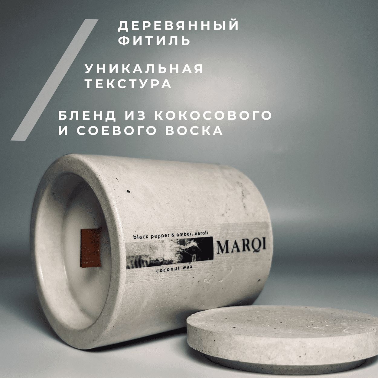 Отзывы на Свеча ароматическая с запахом "Черный перец, амбра, нероли" (Black pepper,amber, neroli) в гипсе с крышкой, с деревянным фитилем с треском 150мл