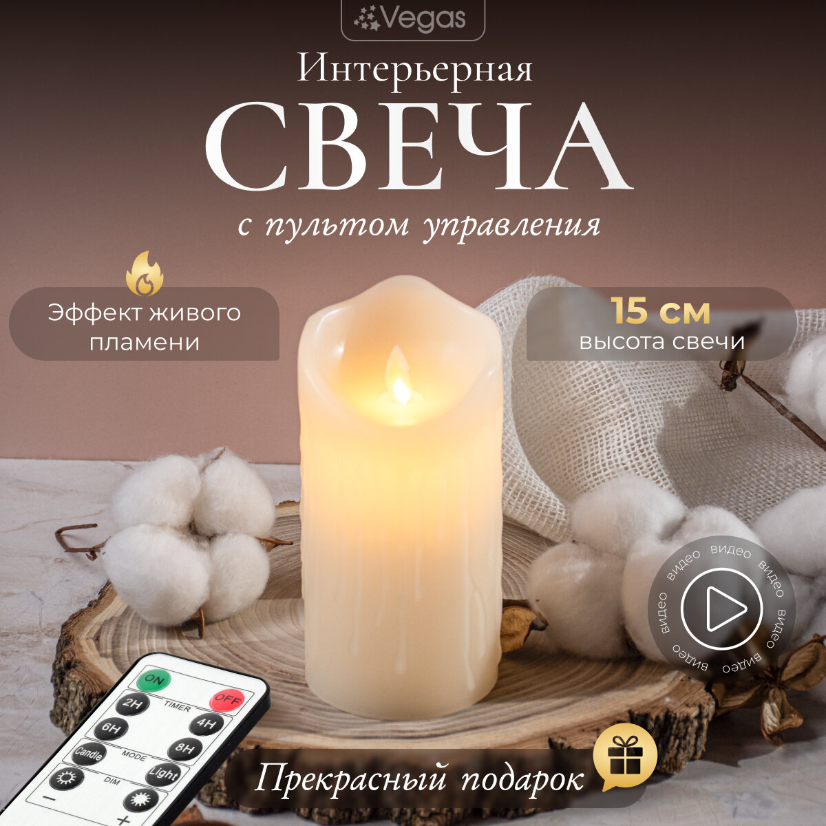 10 цен на Свеча светодиодная многофункциональная, воск, 7,5*15 см, без батарейки, с пультом ДУ /для дома/интерьера VEGAS