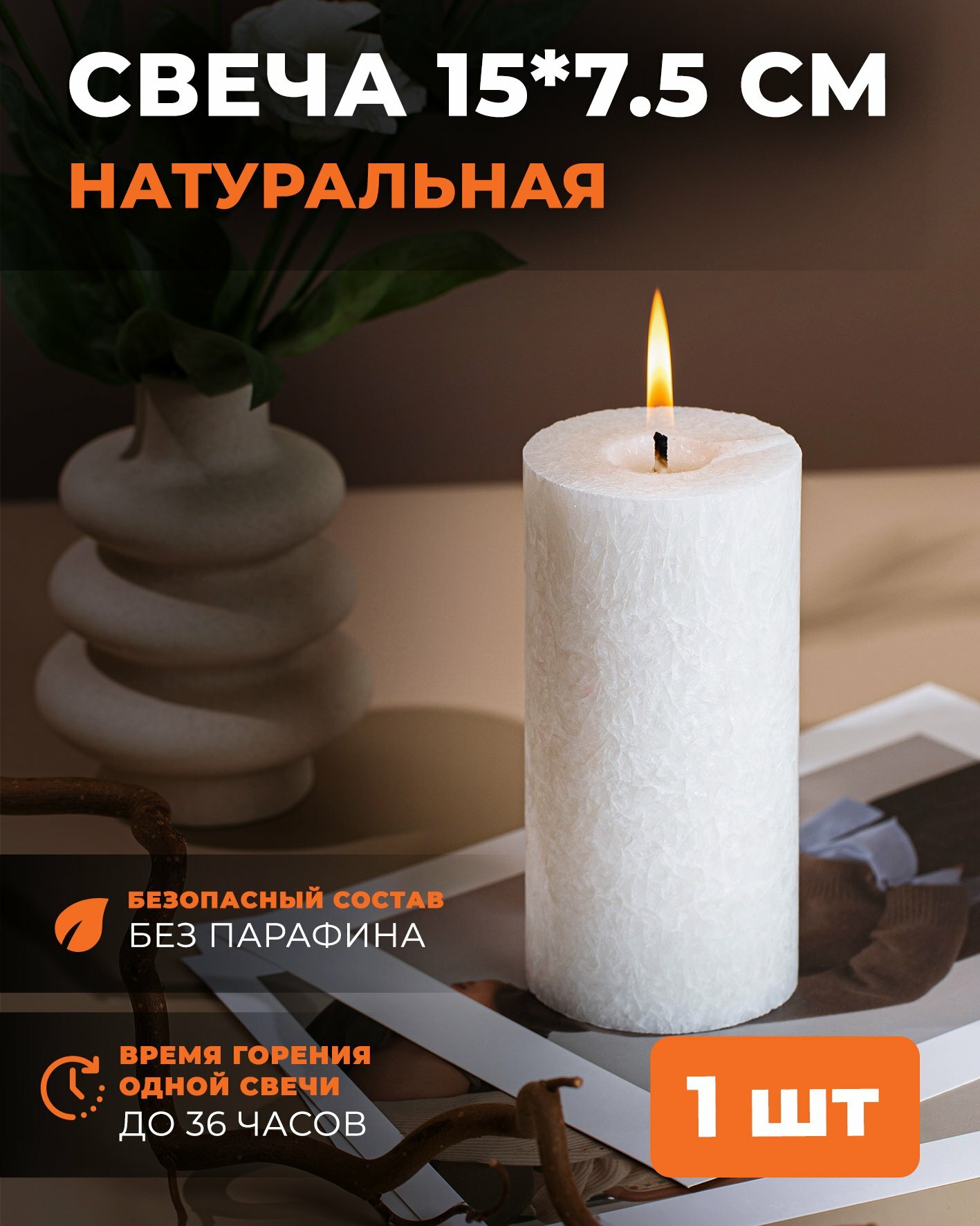 Свеча столбик большая декоративная 15 см информация: