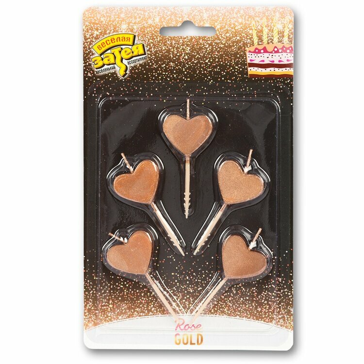 Свечи для торта парафиновые Riota Сердца, розовое золото, 8 см, 5 шт информация: