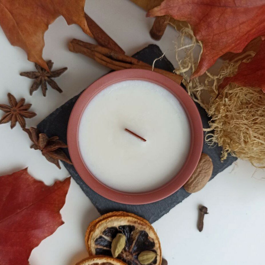 10 цен на Свеча ароматическая с деревянным фитилём "Пряный глинтвейн" из соевого воска в стакане из гипса