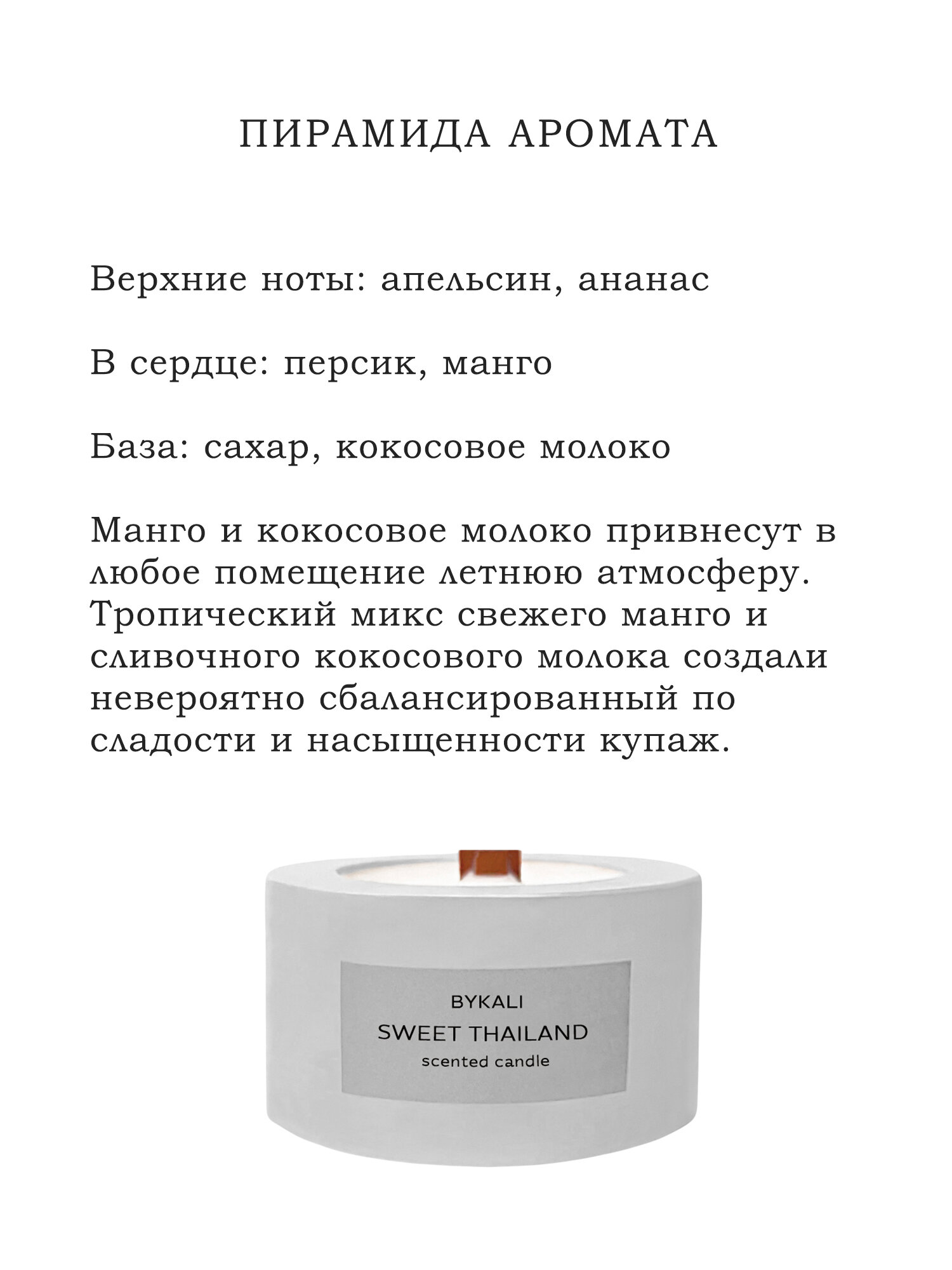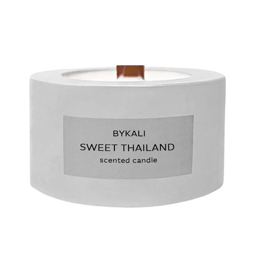 Ароматическая свеча с деревянным фитилем интерьерная ручной работы из соевого воска в гипсе "Сладкий Таиланд" информация: