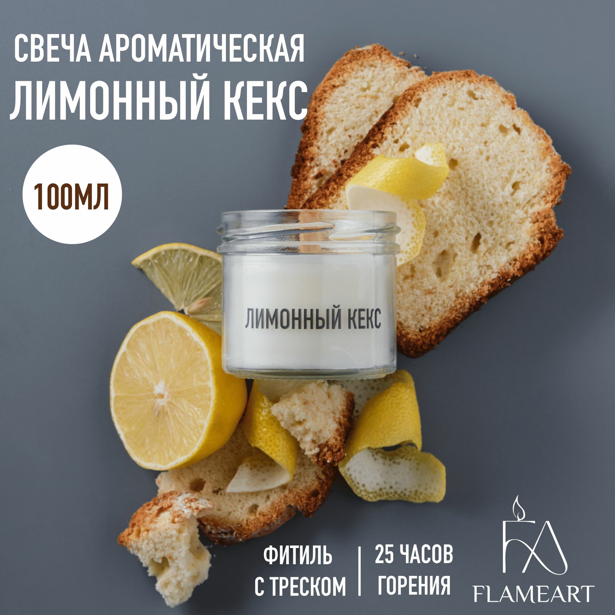 Ароматическая свеча восковая с деревянным фитилем в стекле Лимонный кекс информация: