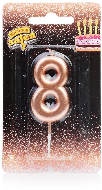 Свечи для торта, Весёлая затея, Свеча-цифра 8 розовое золото информация: