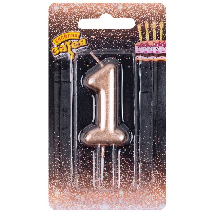 Свечи для торта, Весёлая затея, Свеча-цифра 1 розовое золото