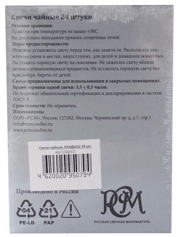 Русская свечная мануфактура Набор чайных свечей "Классика", 24 ш