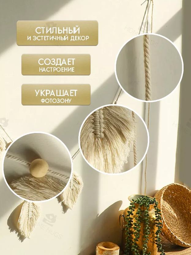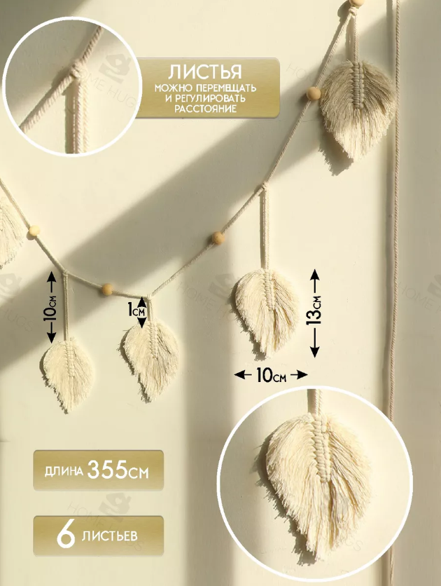 Отзывы на Панно настенное в технике макраме "Гирлянда с листиками" 355x23 см