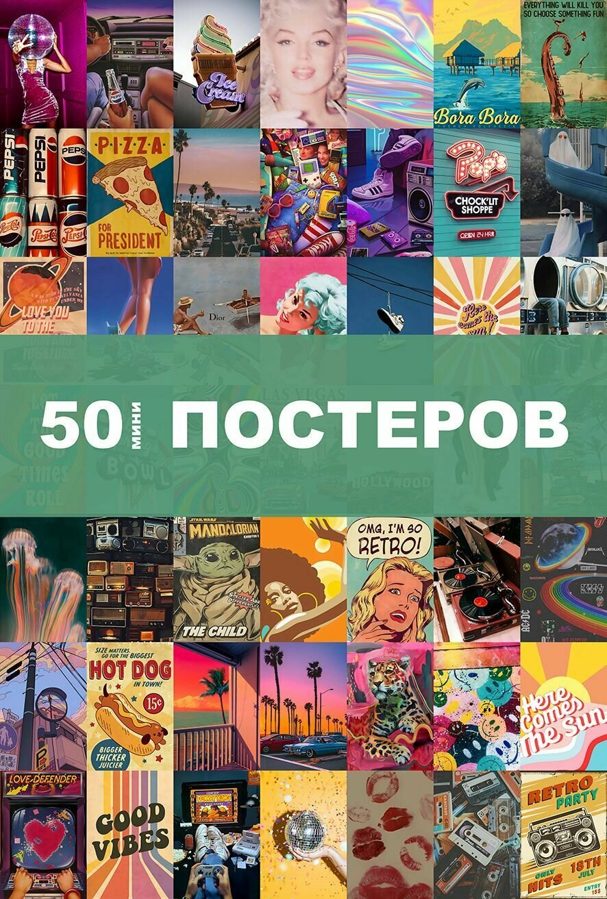 Отзывы на Мини постеры интерьерные на стену набор картинок для коллажа Ретро