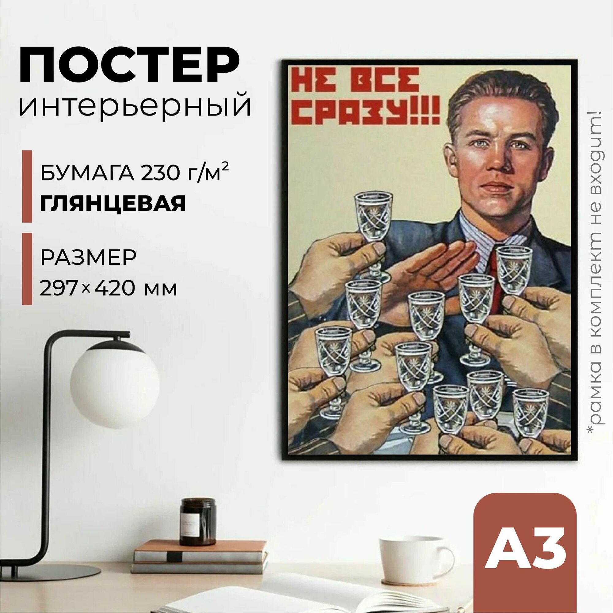 10 цен на Плакат СССР "Не все сразу!!!", 42 см х 30 см