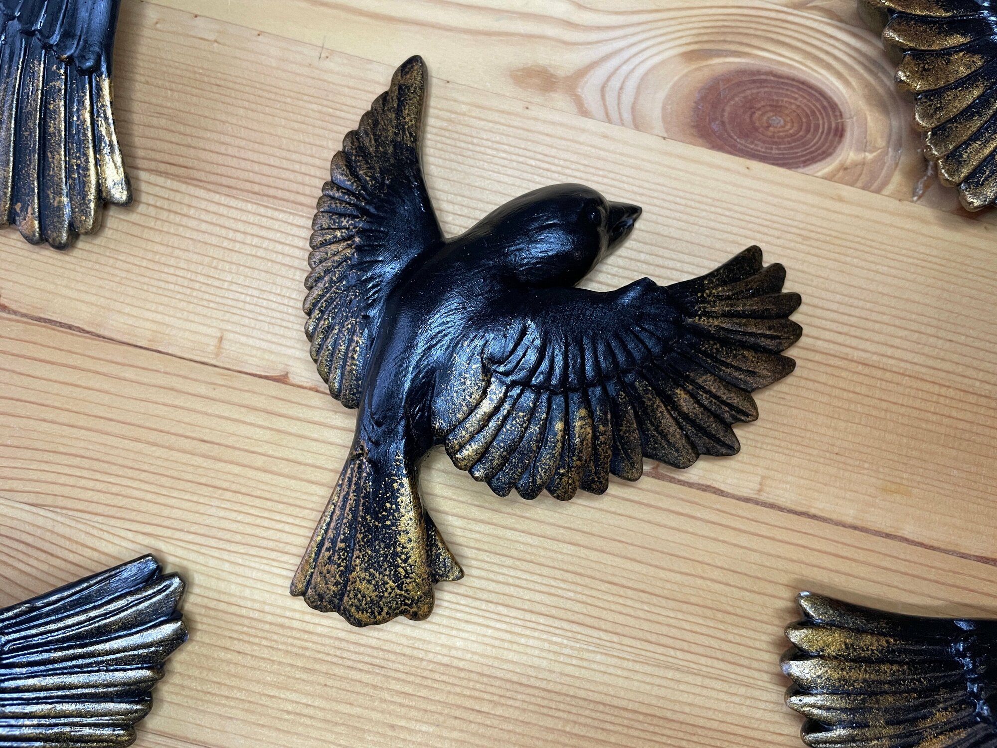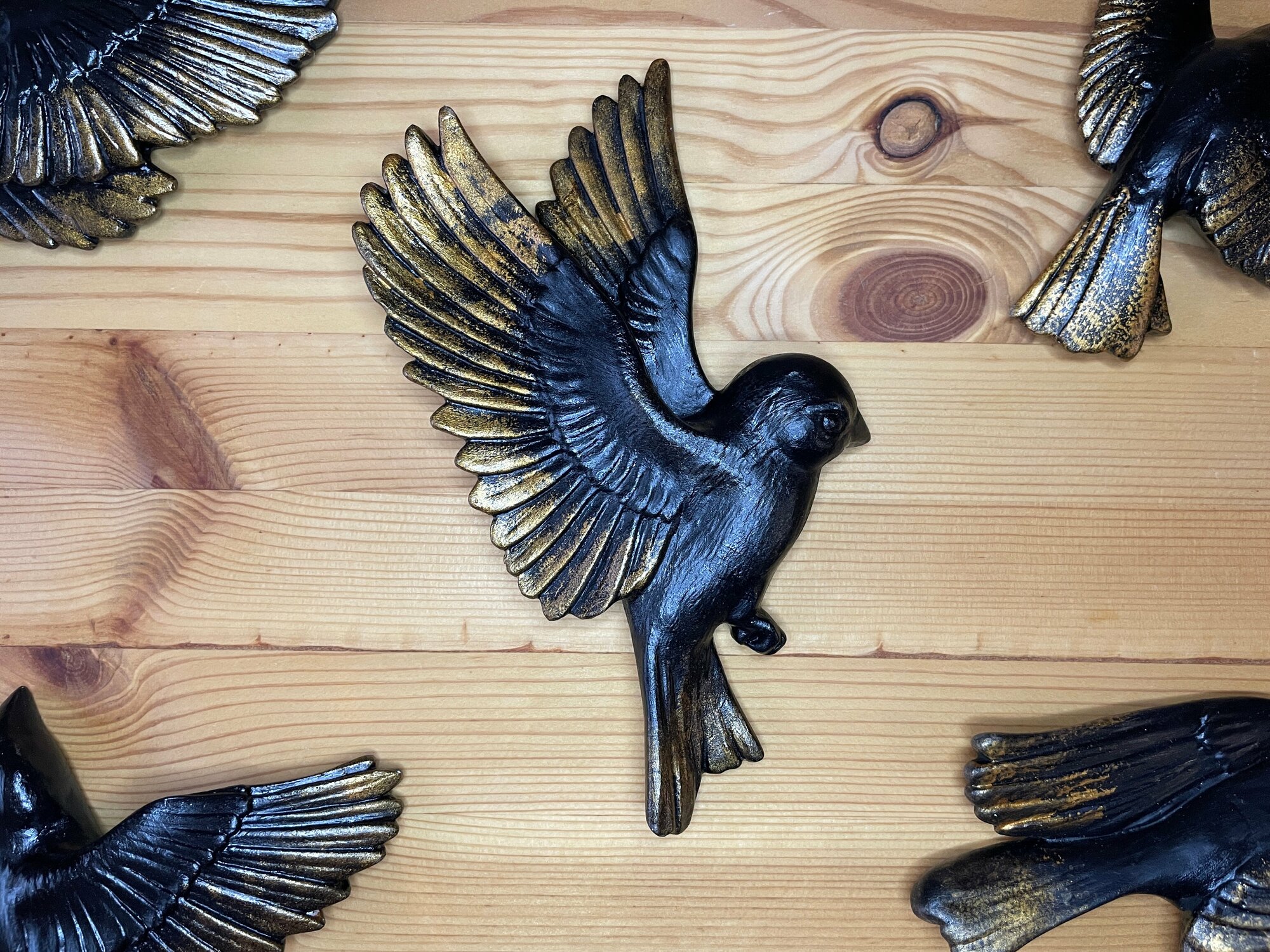 10 цен на Декоративные птицы на стену Чёрные с золотым 5 шт