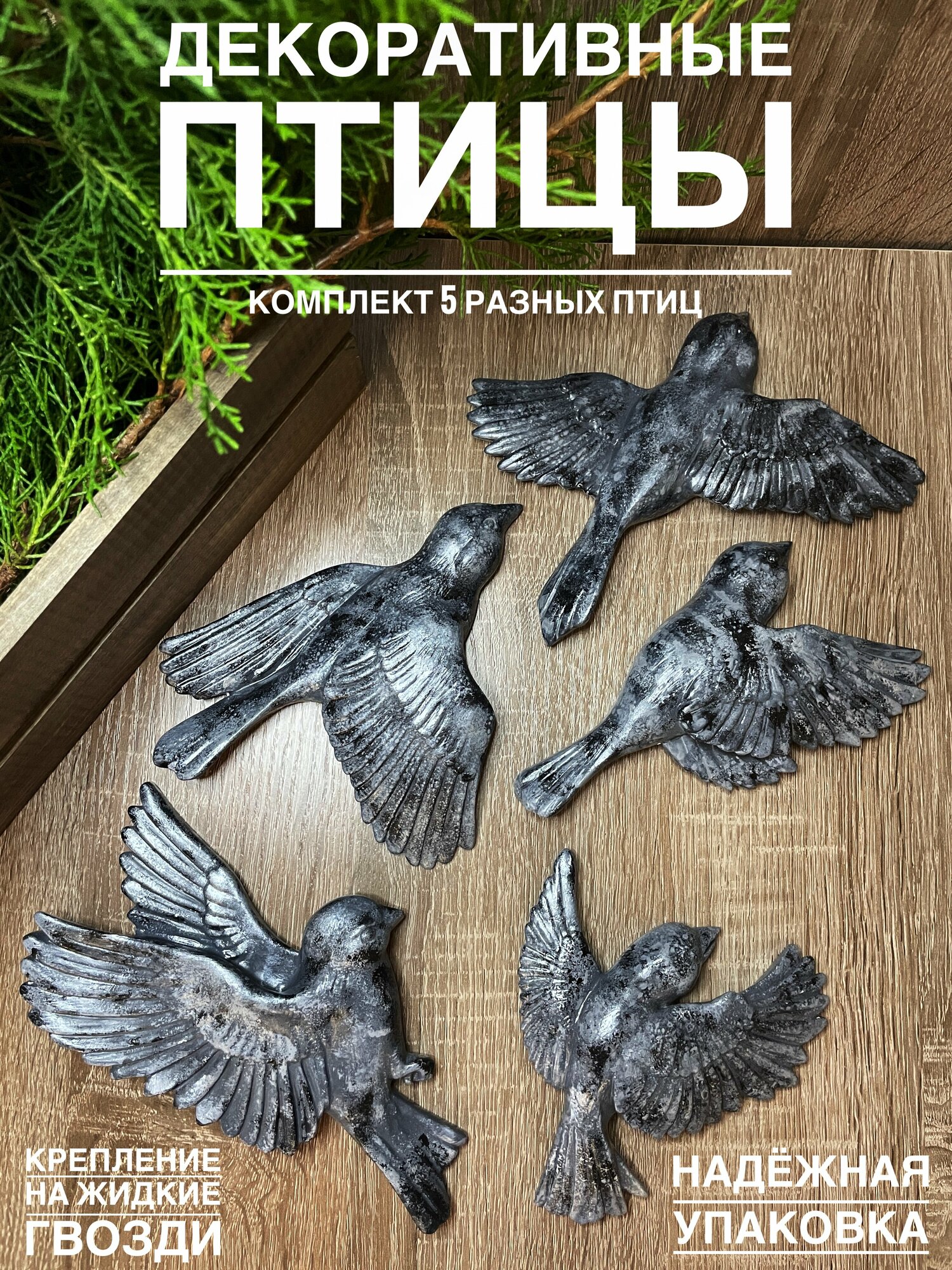 10 цен на Декор на стену панно "Стая птиц" Черный мрамор 5шт