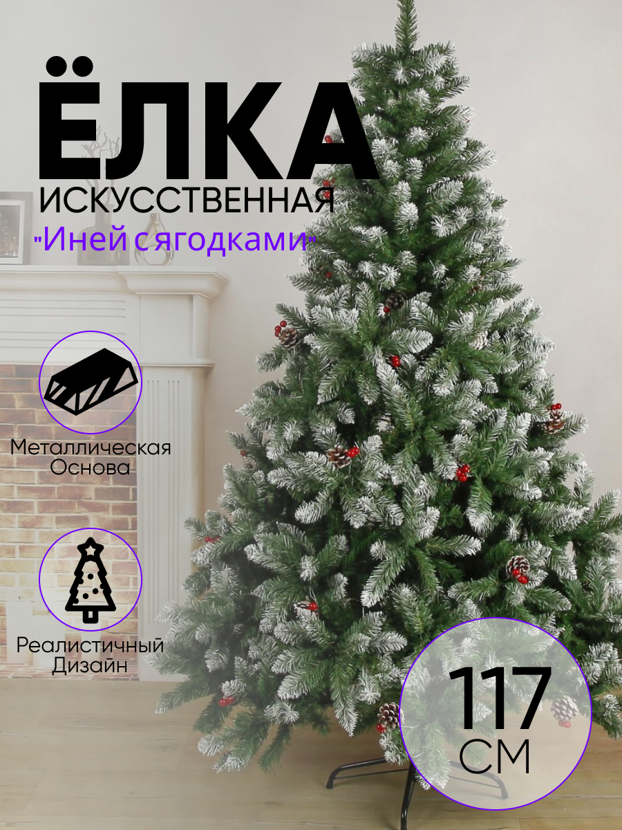 Отзывы на елка иней с ягодами 180 см, d нижнего яруса 117 см, 780 веток, металл подставка