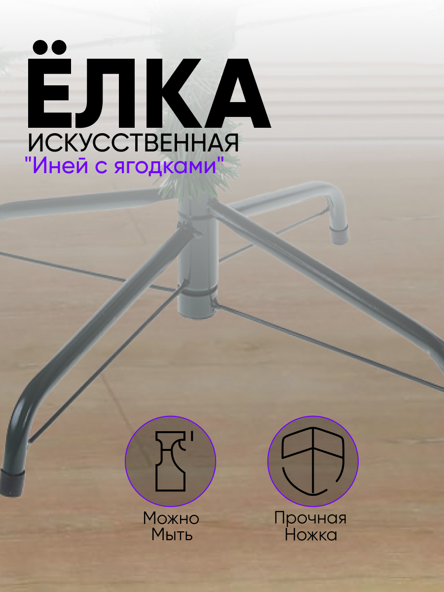 Ёлка "Иней с ягодками". 150 см. d нижнего яруса 95 см. 370 веток. металлическая подставка 540646