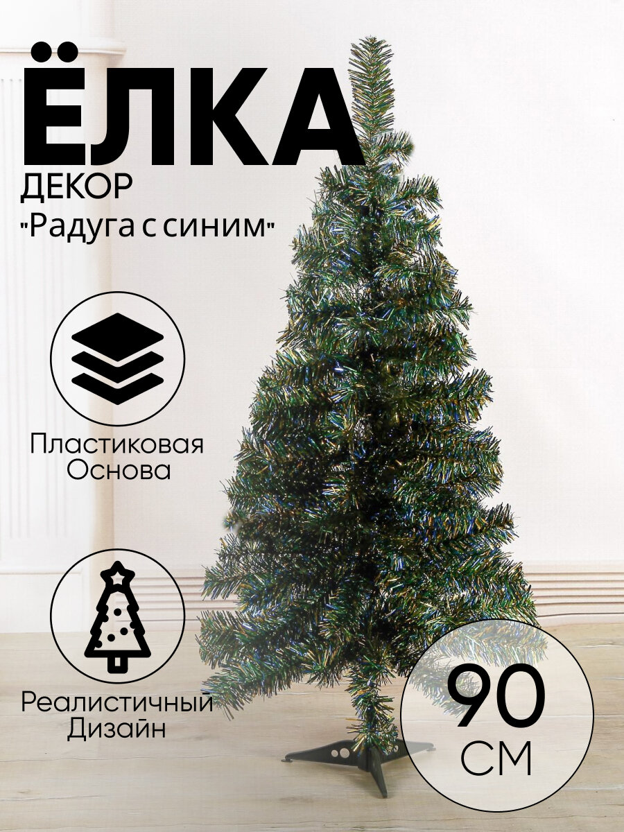10 цен на Ёлка "Радуга с синим" пласт подставка, 90 см d нижнего яруса 40 см d иголок 6 см 90 веток