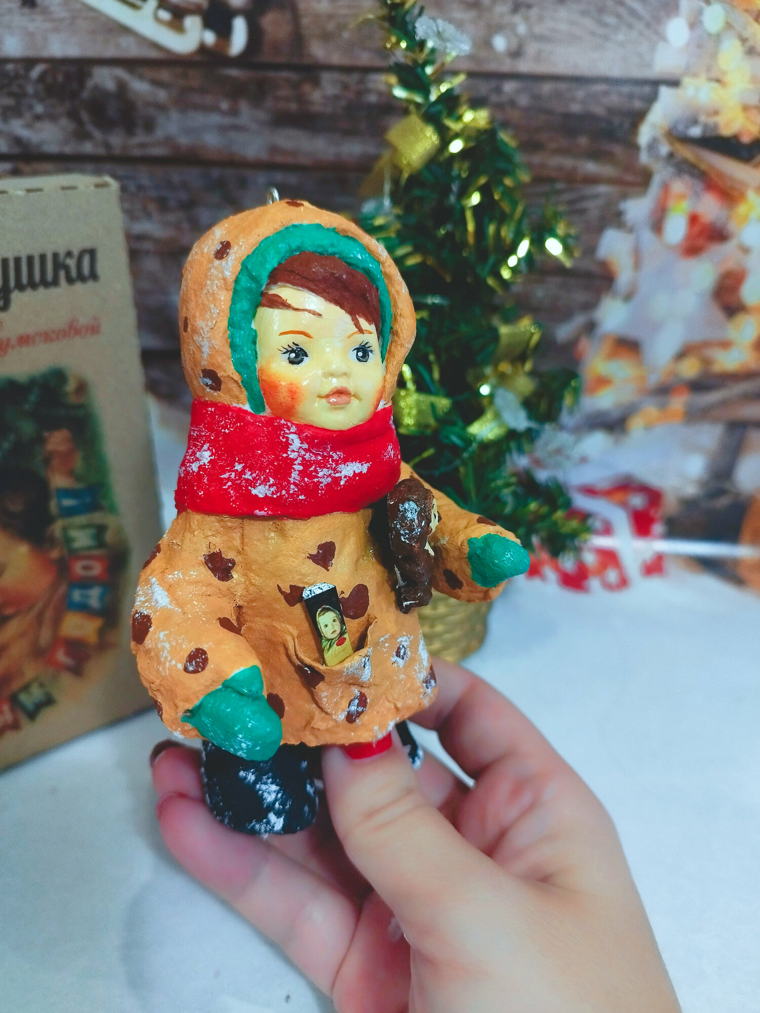 Ватная елочная игрушка - девочка с чебурашкой и шоколадкой информация:
