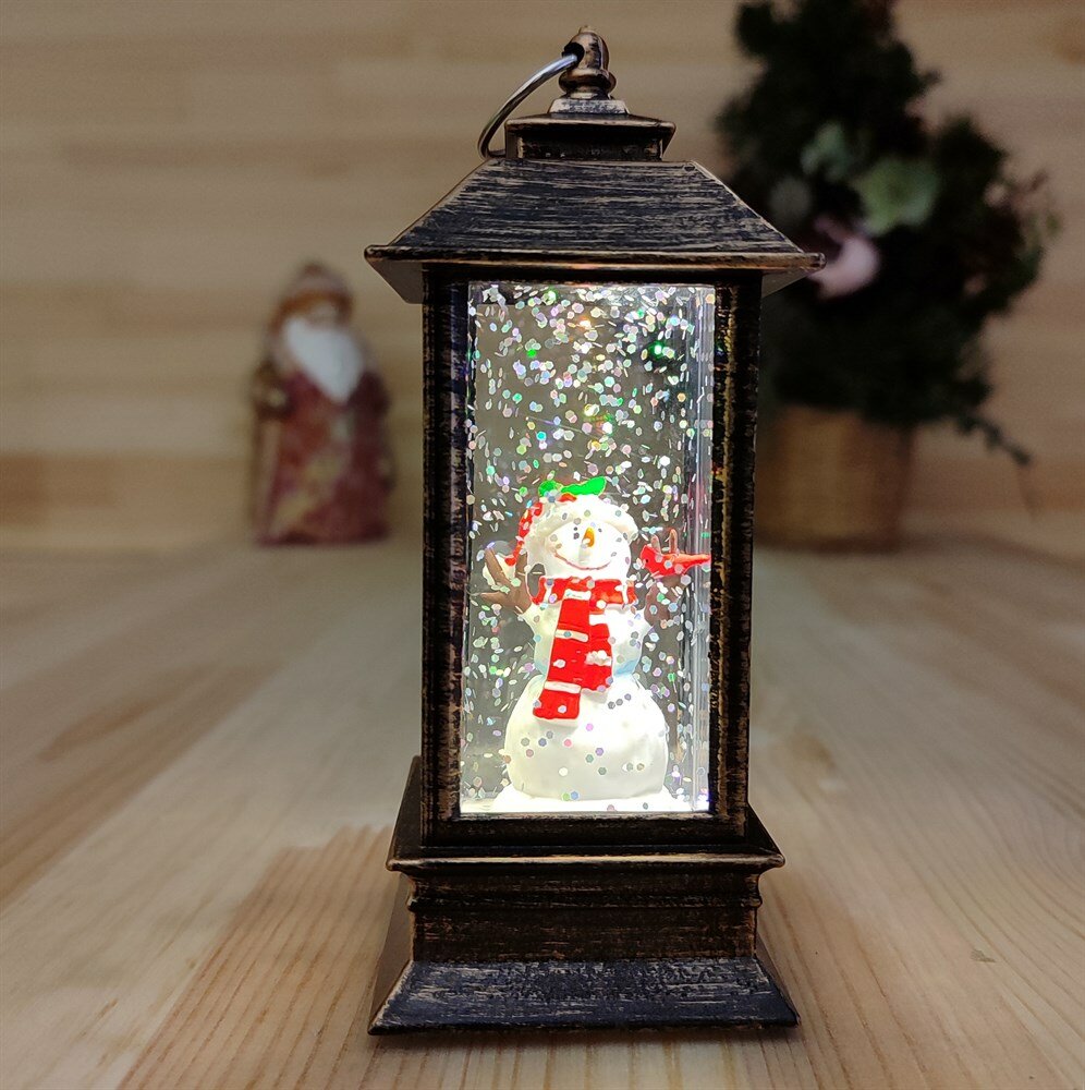 Новогодний декоративный фонарик с подсветкой и снегом | LED-Светильник в ретро-стиле "Снеговичок", 13 см 13х5,5х5,5 см Под бронзу 749 ₽
