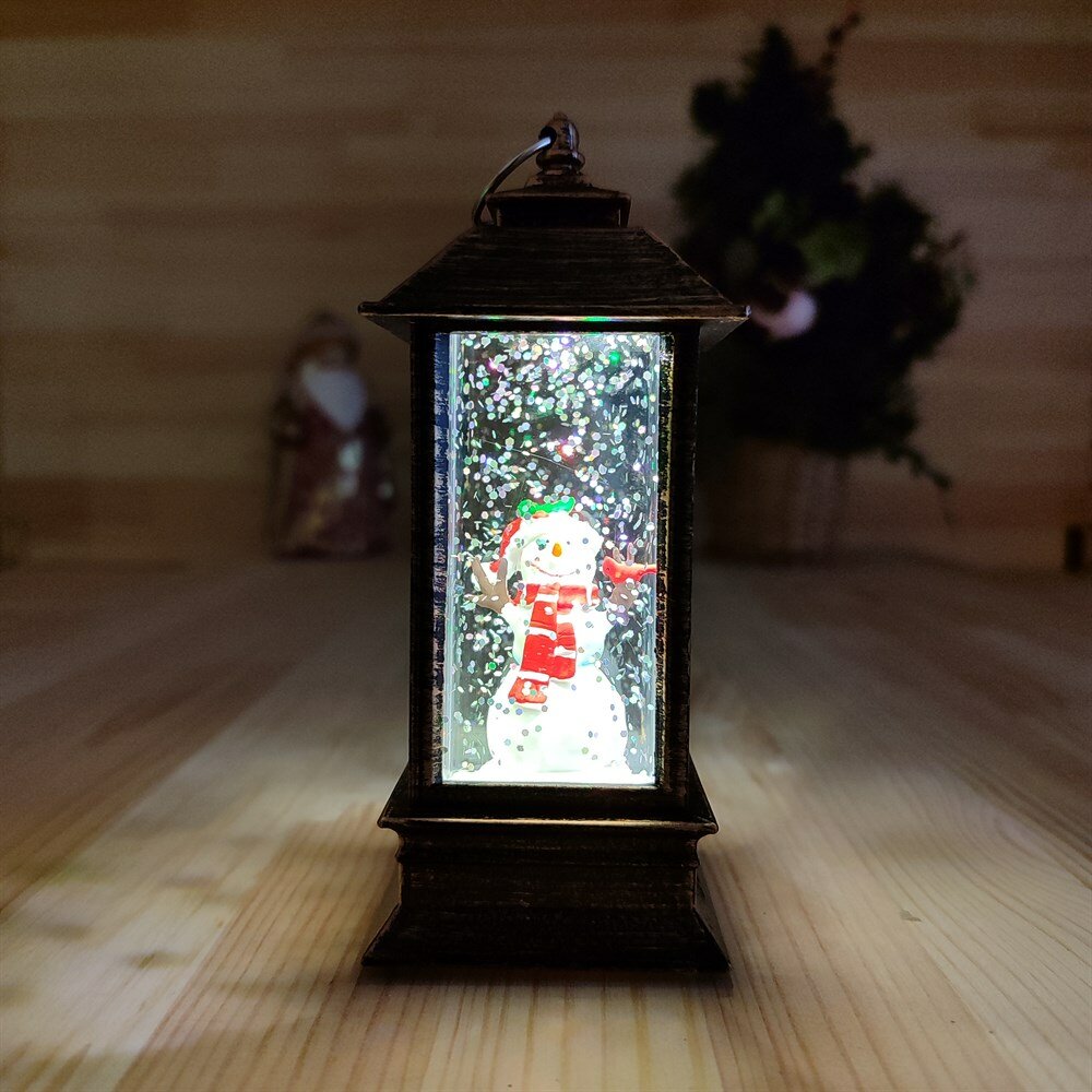 10 цен на Новогодний декоративный фонарик с подсветкой и снегом | LED-Светильник в ретро-стиле "Снеговик", 14 см