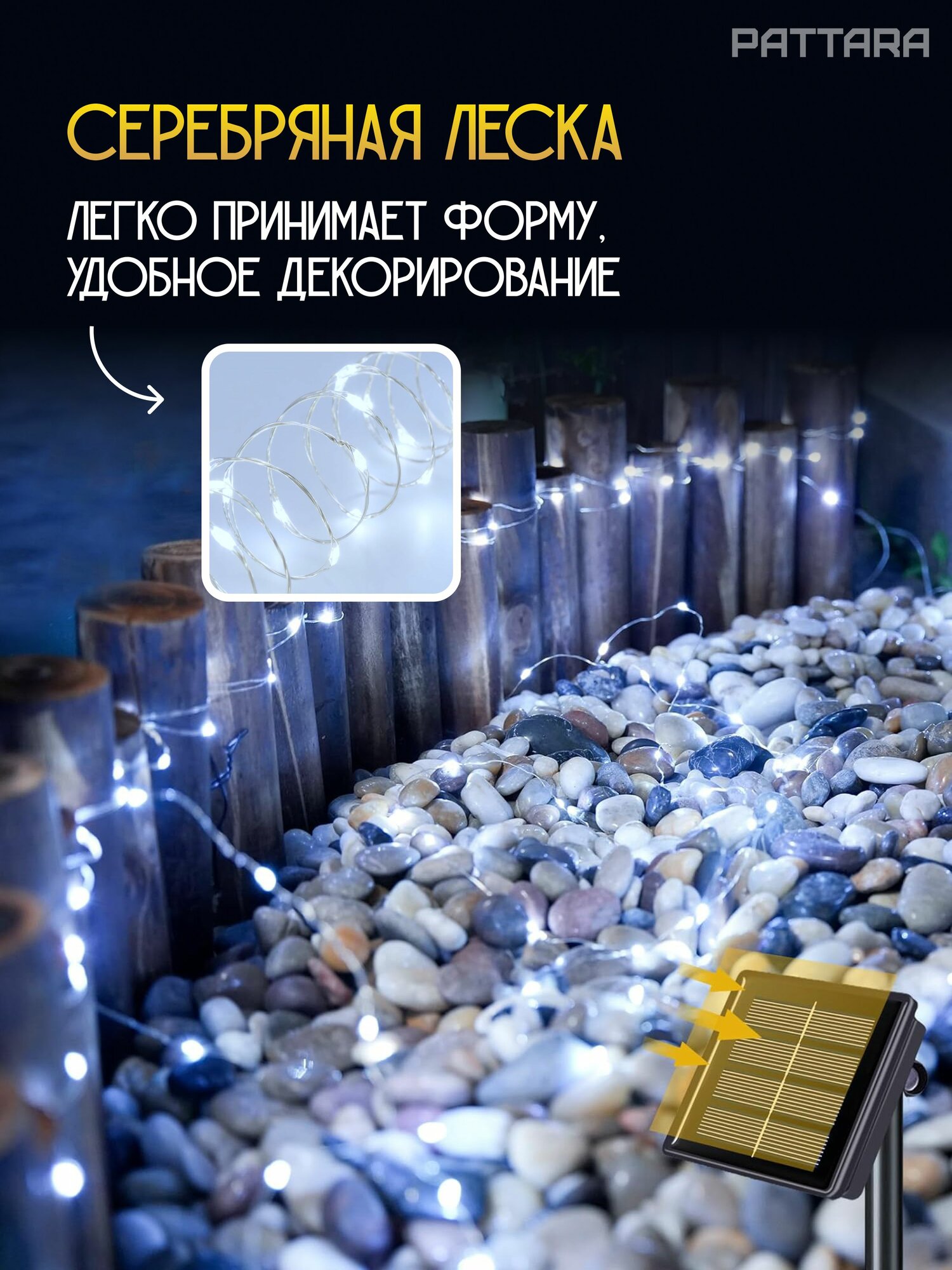 Гирлянда на солнечной батарее уличная 10 (+2) м, 12 м, серебряный провод 550 ₽
