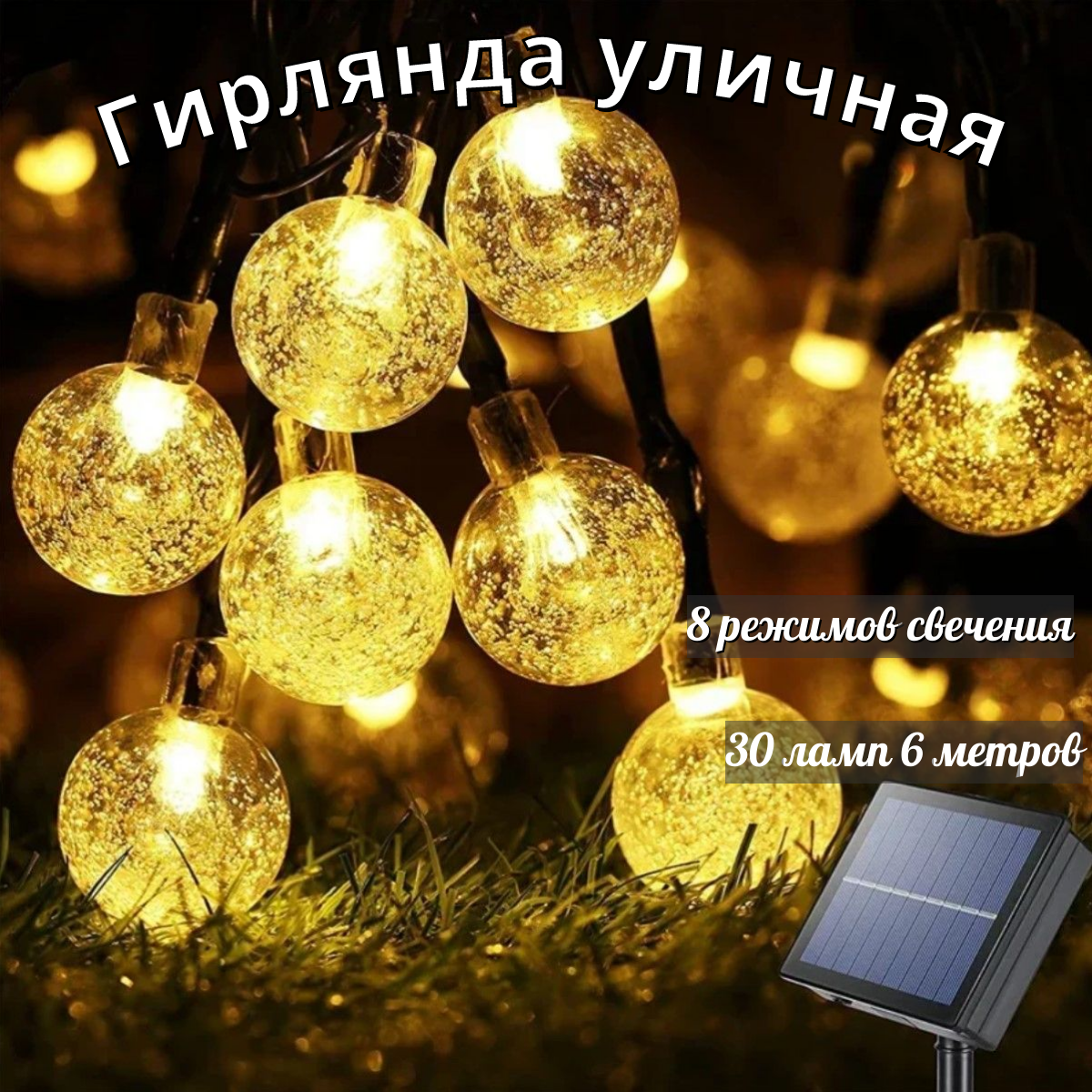 10 цен на Светодиодная гирлянда в форме шариков (2,4 см) желтые на солнечной батареи 30 ламп 6 метров