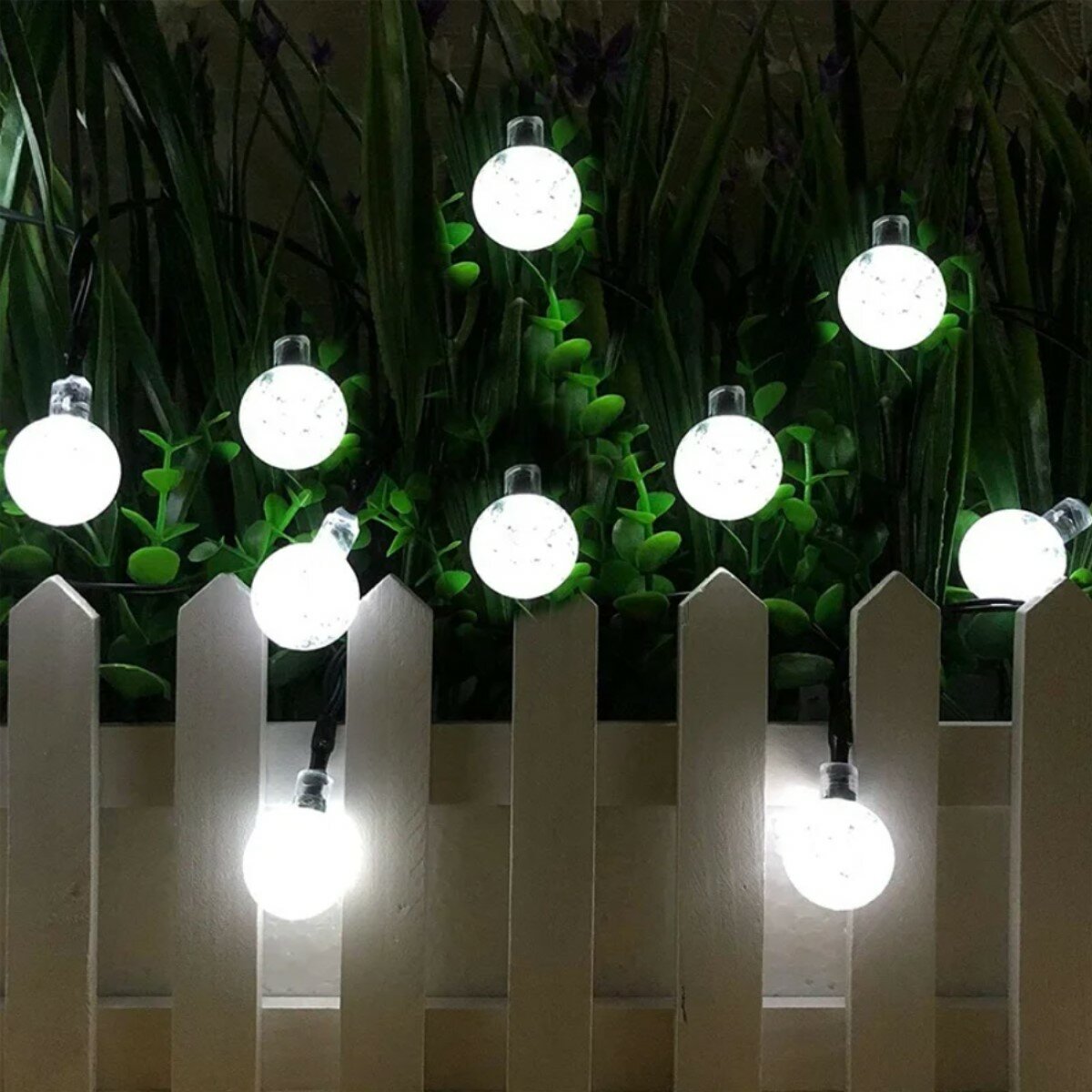 Светодиодная гирлянда в форме шариков (2,4 см) белые на солнечной батареи 30 ламп 6 метров 810 ₽